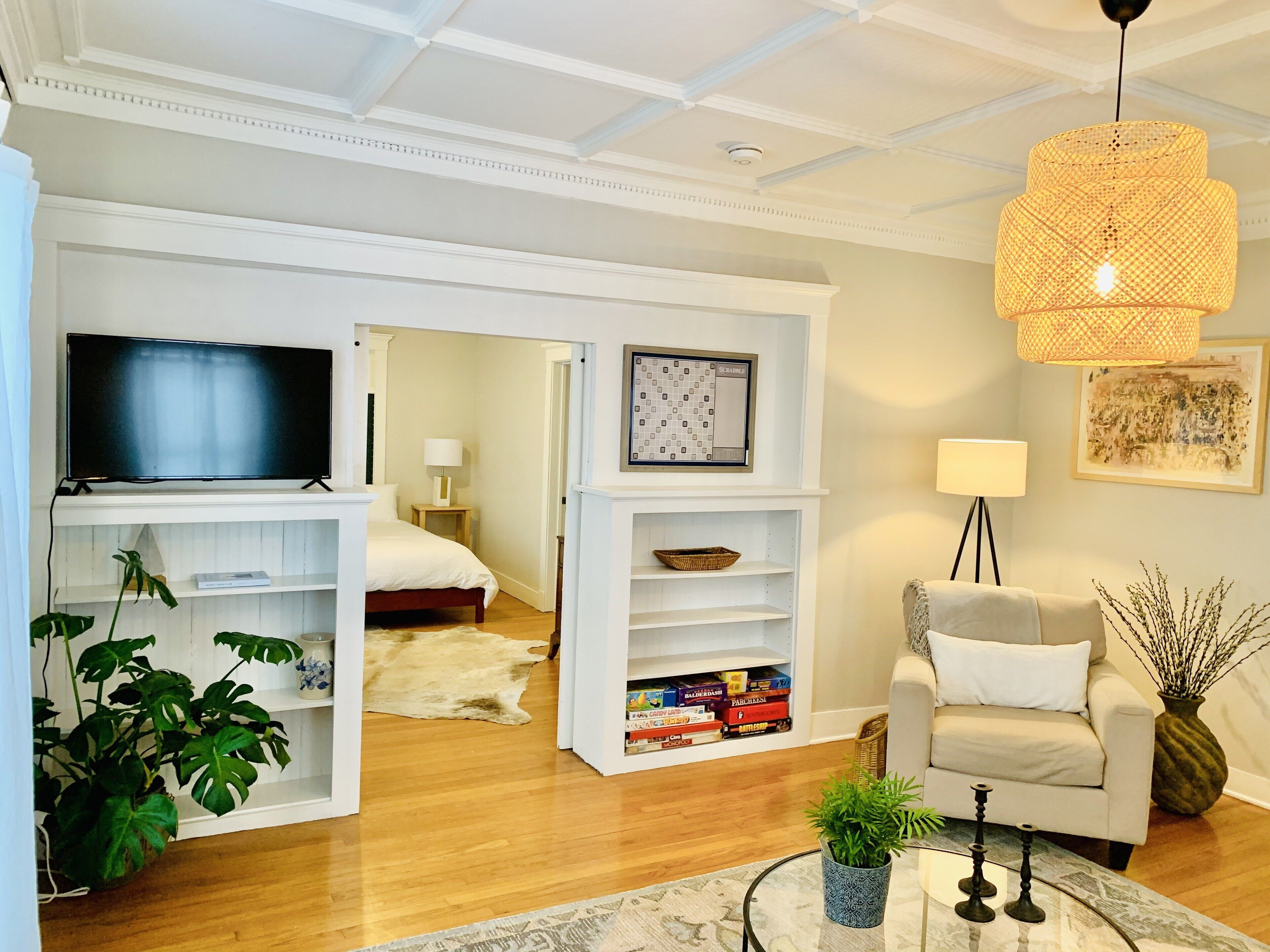 This small self-contained studio apartment in my home includes full kitchen amenities. French doors open to a lovely screened porch for relaxing with your morning coffee or evening aperitif.