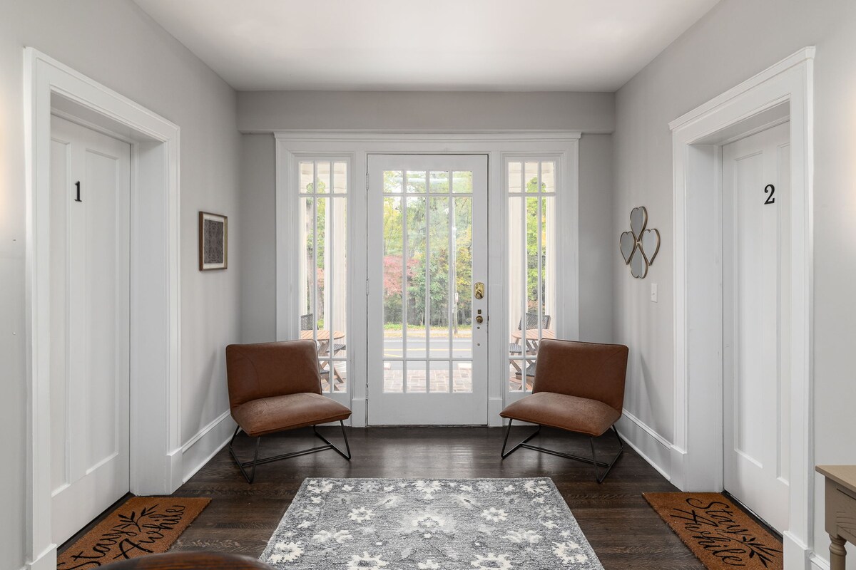 The main house has Smart Locks where all tenants will enjoy common space, laundry room and a great front porch seating area - this porch is the best spot in the house for watching storms! All apartments are rented as full units with two entrances/exits for safety and convenience.