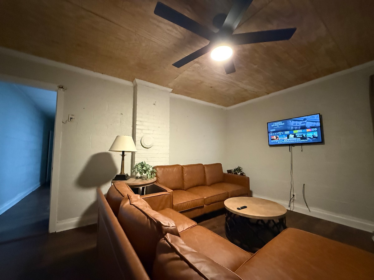 The McCauley House was built in 1920 as a single family home. From what we can tell the McCauley Family owned it for nearly 100 years and at some point in time they did a conversion to a 4-plex apartment building. We bought the building in 2022 and have worked hard to restore every room. in this apartment you will find 2 original fireplaces, 11' Ceilings and all of the modern amenities that you would expect to include a King Bed, Fully Stocked Kitchen and Large Soaking Tub. The apartment features High Speed Internet with an access point for ethernet and Smart TV's in both the living room and the bedroom.