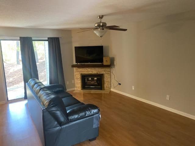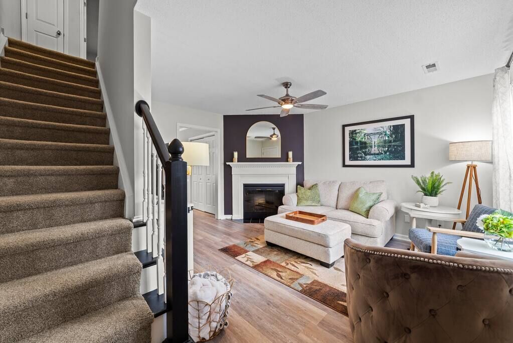 Closed fireplaces with mantles in Living room and master bedroom. Wood and ceramic tile floors in common areas and carpet in bedrooms and office. Front porch with 2 rocking chairs. Rear of unit offers a beautiful view of the 10th Street Connector that connects you to ECU Health and ECU Student Center. Smart TV's in bedrooms and Living Room. Enjoy your fully equipped, private space.