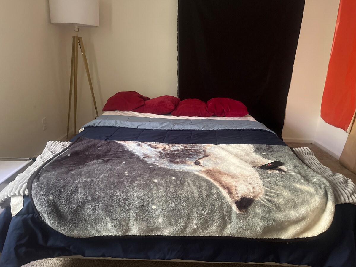 Free Wi-Fi, perfect for a small family or group of friends! This cozy 2-bedroom house has everything you need for a relaxing stay. Each bedroom has a plush queen bed. The master bedroom has a futon Sofa Bed and air mattress for extra sleeping space. The kitchen is fully equipped, and the living room offers a comfy seating area and smart TV. Both bedrooms also feature smart TVs. Clean bathroom, washer, and dryer. Centrally located near ECU and ECU hospital, it's perfect for your next visit!