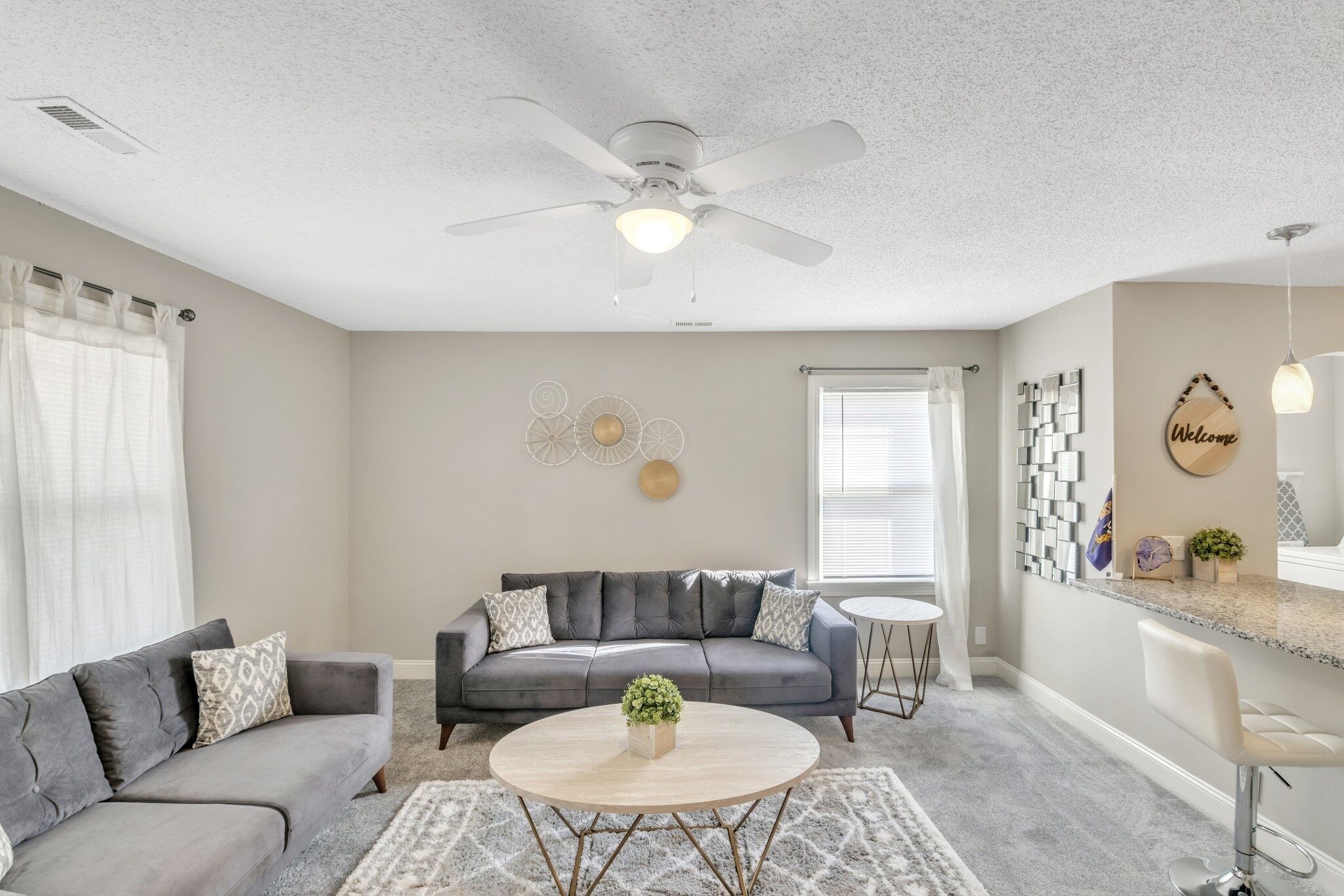 All bedrooms have Outlet/USB chargers on the night stands. The living room end table has a Outlet/USB charger. (PLEASE DO NOT REMOVE)