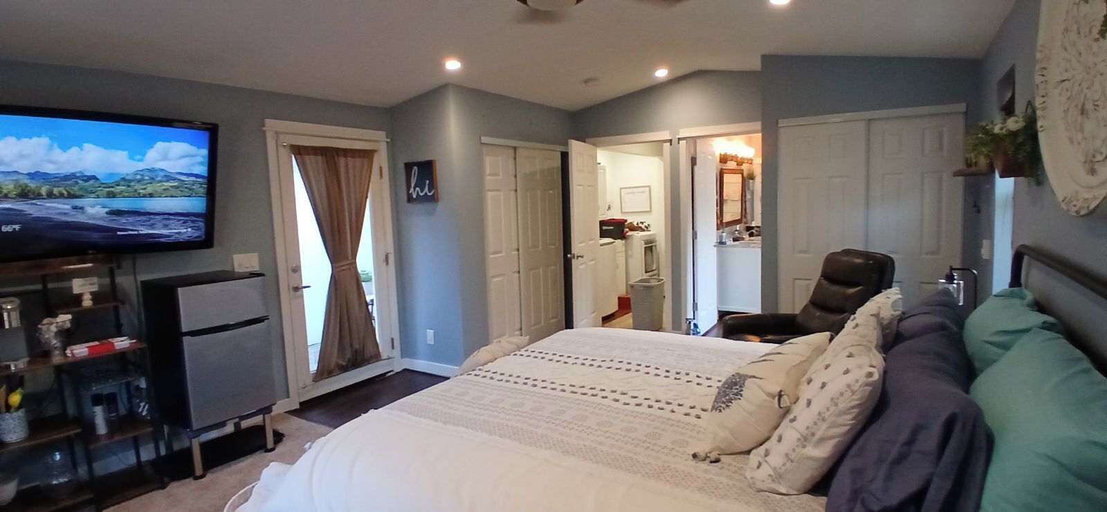 This smart lock entry apartment is located downstairs in the lower level is separate and private from the main house. Access by using the keypad outside the garage. The garage is a shared space.