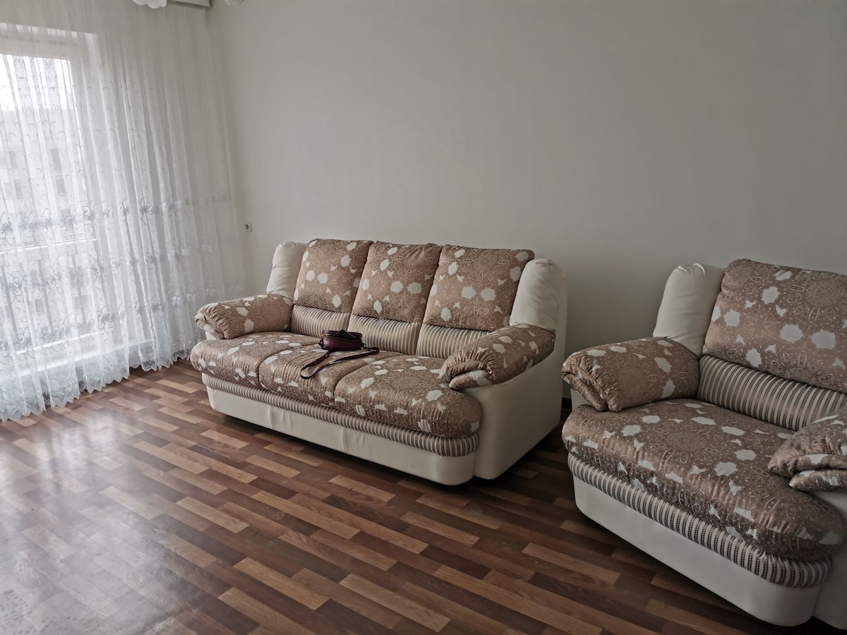 Beautiful big apartment with 3 rooms in the center of the city. Includes 2 bedrooms and 1 room with TV and sofas. All sightseens, shops, banks, aptekas etc are nearby. Equiped with free wi-fi, towels, bed linen, kitchenware, refrigerator, microvawe owen. It will be great choice for groups, couples or family. Check in at 14.00, check out 12.00. There is no24р reseption! Guests must to contact apartment owner minimum not later than1 day before arrival.