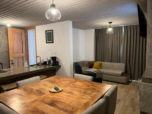 A recently renovated apartment, Departamento Glorieta offers accommodations in Mazamitla. The apartment, set in a building dating from 2021, features free Wifi and free private parking. Guests can use a terrace. Featuring a balcony with mountain views, this apartment also includes a flat-screen TV, a well-equipped kitchen with an oven, a microwave, and a fridge, as well as 1 bathroom with a shower. The property has an outdoor dining area. The nearest airport is Licenciado Miguel de la Madrid Airport, 73 miles from the apartment.