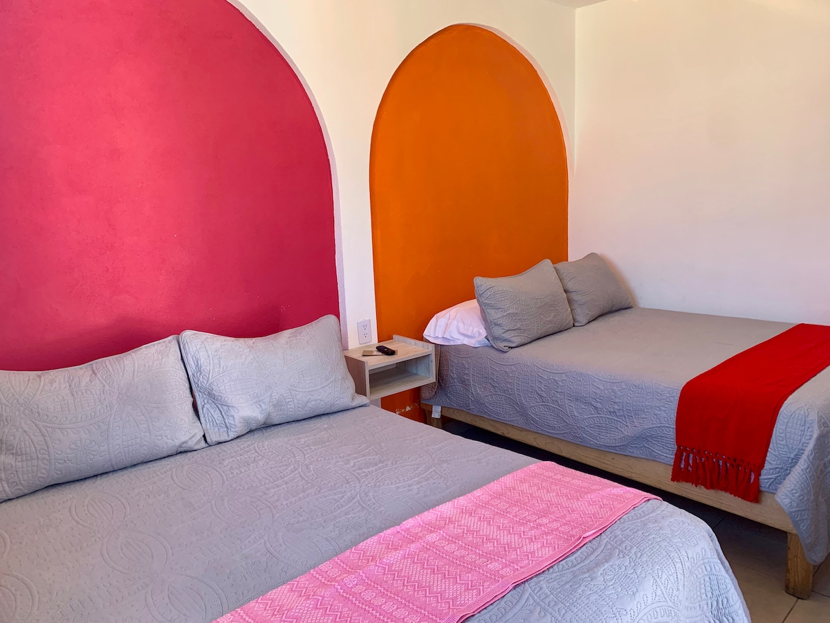 The room, located on the third floor (you need to climb 2 stairs), provides you with a cozy retreat. A bedroom with a window overlooking the Alhóndiga de Granaditas. Two comfortable double beds, and of course, with your full bathroom, you will have everything you need to rest and relax.