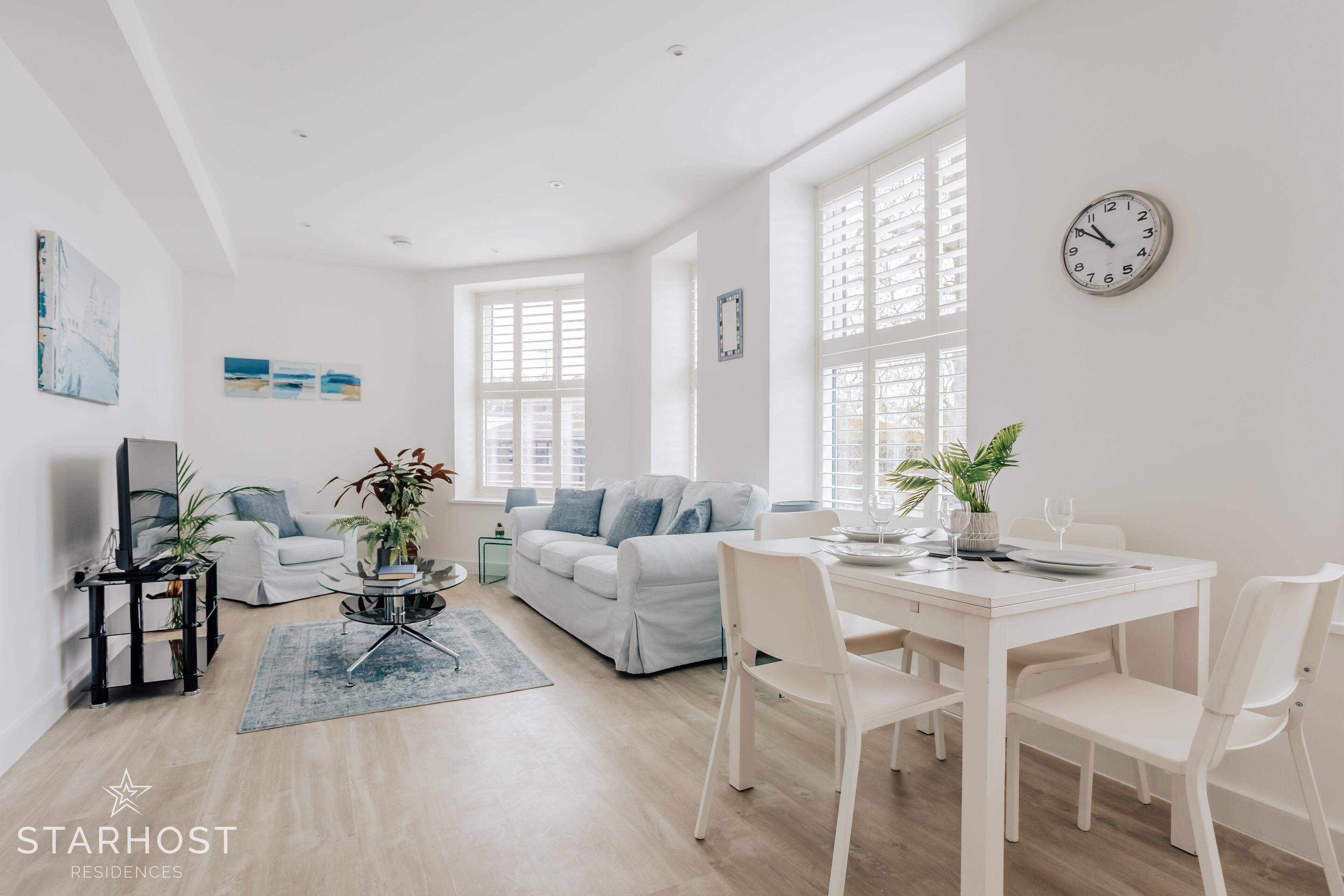 For the safety and security of our guests, CCTV cameras may be in operation outside. All our apartments are strictly non-smoking, and house rules are strictly enforced. Please note that Millmead Apartment comprises three 2-bedroom flats. Each flat has its own unique decor but shares the same amenities and layout. The photos shown represent two of the ground-floor apartments. For long-term stays, a maximum of 4 adults is allowed, and a specific apartment with 2 single beds and 1 king-size bed will be assigned.