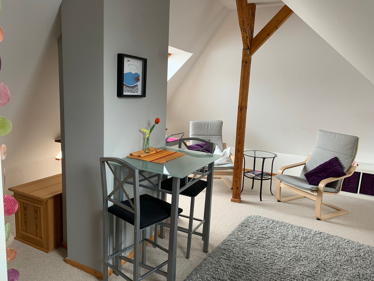 You have a pretty little room with fresh linens, towels, a small desk, a clothes rack and a large mirror for you. We have also set up a small guest refrigerator in the meantime due to multiple requests. You are welcome to turn it on yourself. However, some are disturbed by the noises that a refrigerator unfortunately makes from time to time. Then just leave the fridge off.