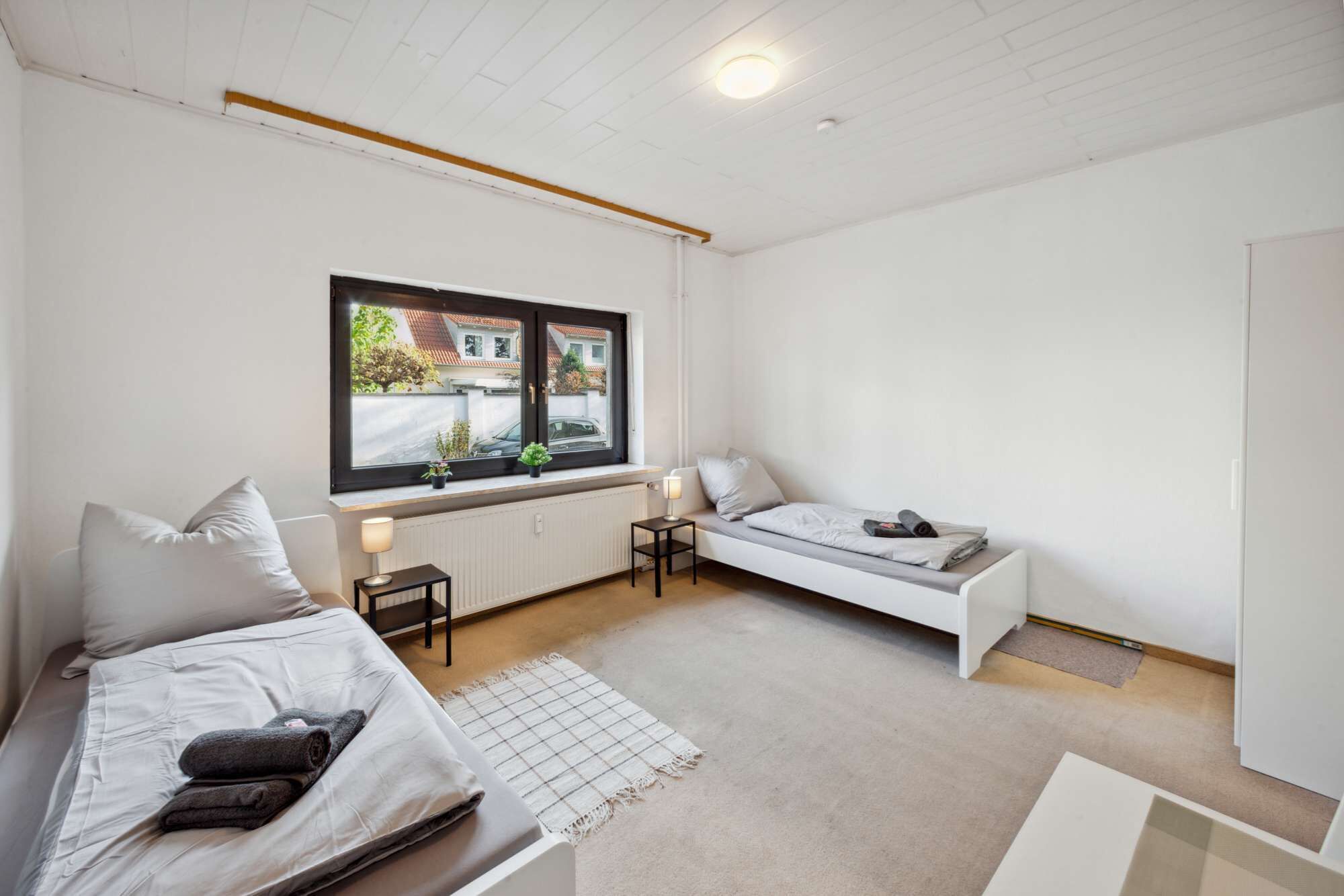 In a few minutes you can reach the motorway (A3) in the direction of Frankfurt /Flughafen /Köln and Würzburg, also fast it goes in the direction of Gießen/Fulda/Kassel. SBahn station, Hanau main train station with IC/ice connection, bus connection. One of the architecturally unique local supply center Rondo is a 300-meter walk. For the breaks, nearby forest invites you for walks. Popular is the historic old town of Steinheim with its locations. Quiet location!