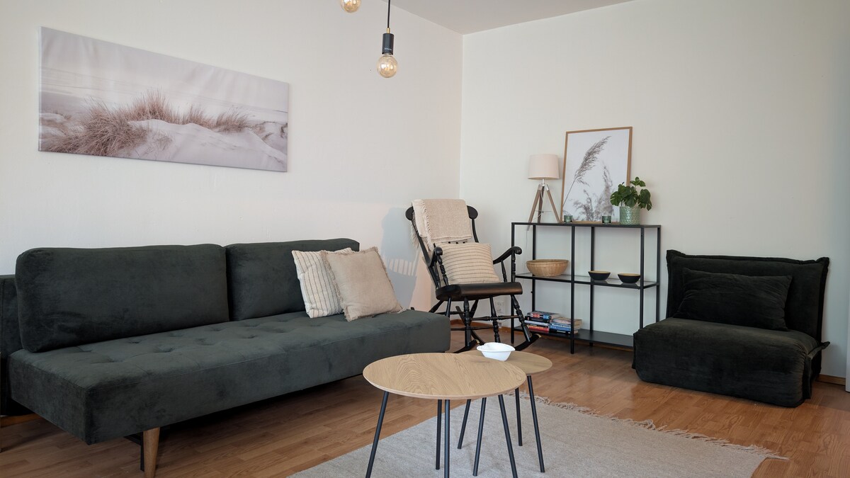 The apartment is a 45m2 terraced apartment at the end of a small terraced house company in its own peace. There is a double bed in the bedroom and there is also a travel crib for the baby. The living room has a wide sofa bed that sleeps 2 adults well.