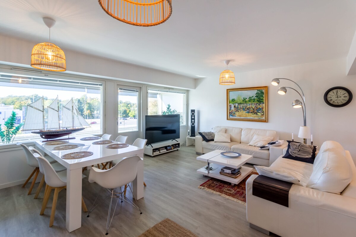 Fully renovated and renovated three-bedroom apartment in the center of Hanko, in the Bridge City house designed by Viljo Revell.