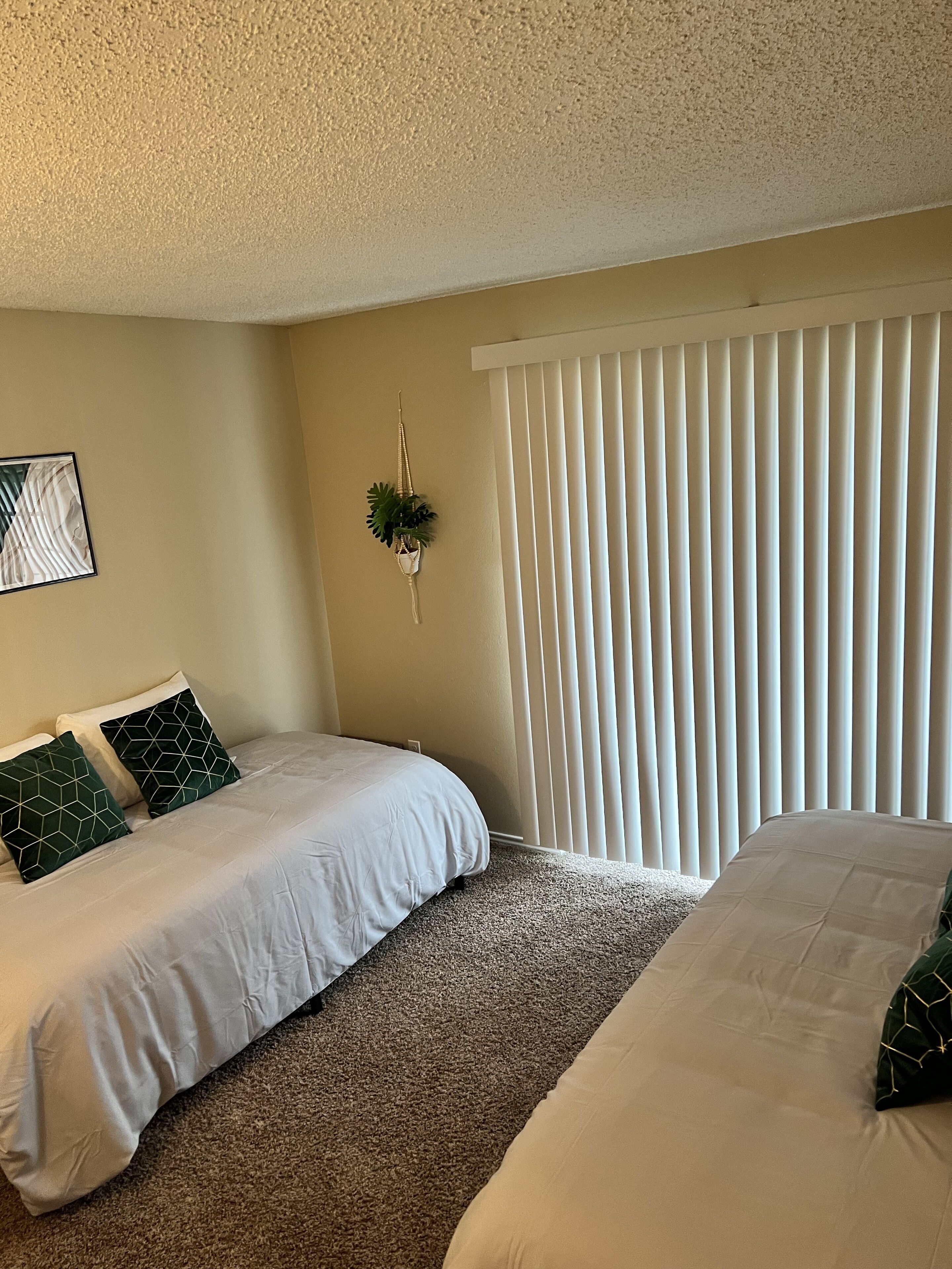 Inside our inviting space, you'll find two spacious bedrooms, each thoughtfully designed to provide a peaceful and comfortable retreat during your stay. Sink into the ultimate relaxation on our plush and cozy beds, offering unparalleled comfort that will leave you feeling rejuvenated each morning. Need storage space for your clothing and luggage? We've got you covered! Our bedrooms feature ample storage options, ensuring you feel organized and at ease throughout your visit. Experience the perfect night's sleep in our well-appointed bedrooms and wake up feeling refreshed and ready to explore all the exciting attractions our destination has to offer.