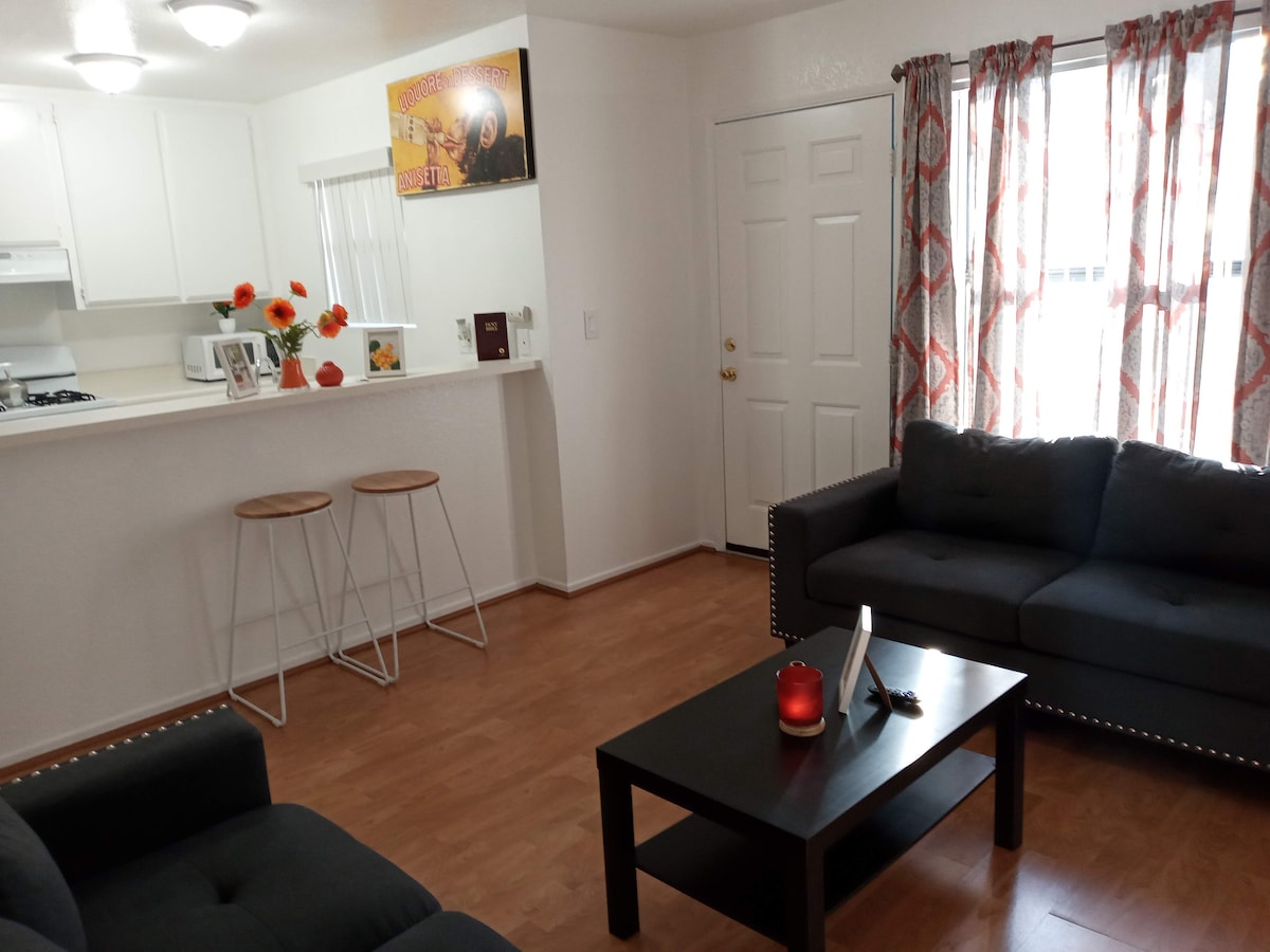 - "Apartment was clean and nicely renovated. Hosts were very accommodating and easily accessible. Gated parking was very convenient. It was an easy, no hassle experience. Would reserve again." - "This place is immaculate and everything you need has been thought of and provided. It is brand new and has been decorated beautifully. Parking is great because it’s behind a gate with your own space. Very close to freeway and all the sightseeing. Most of all, Kris and Eddie were wonderful hosts, we did not want to leave and added another night!"