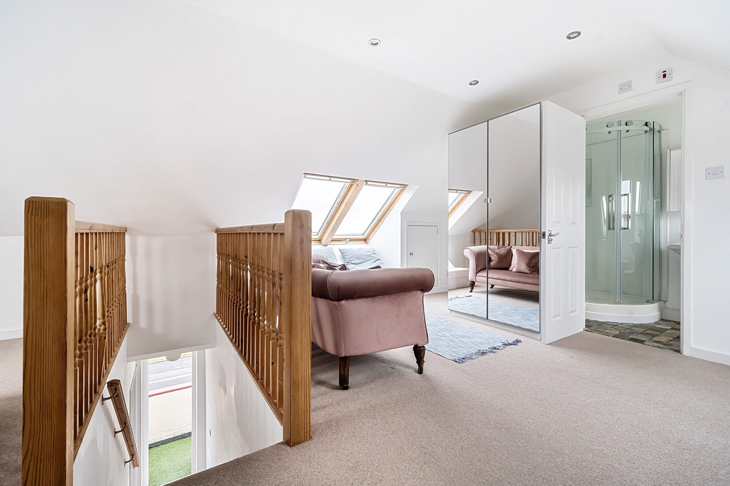This property is an upstairs flat and has 1 flight of stairs to get to it. Inside the actual flat there is 1 stair case taking them up to the bedrooms and bathroom