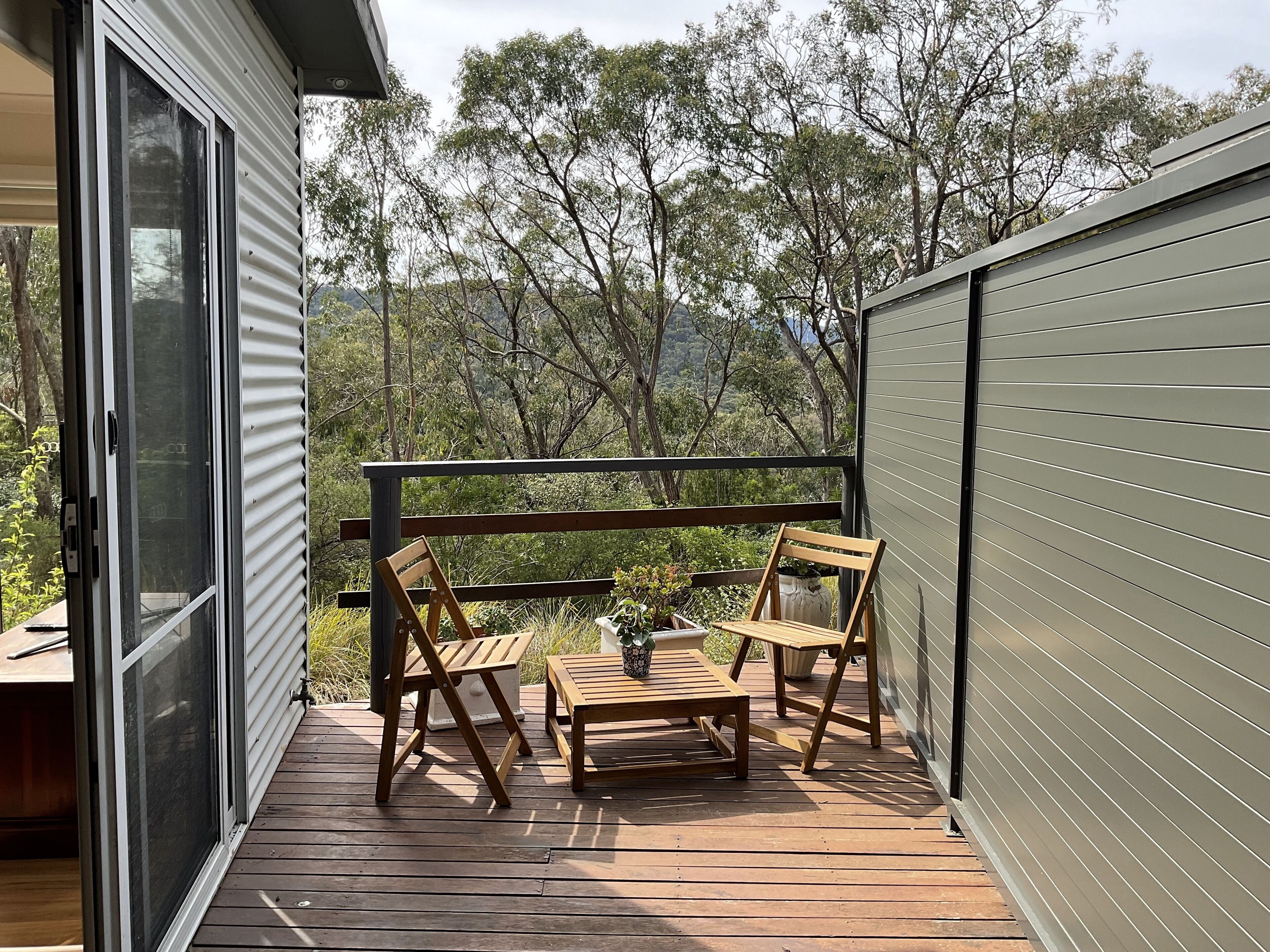 The outdoor cafe style seating is perfect for that glass of Yarra Valley wine or intimate dining with your partner. Enjoy lounging on the lawn, surrounded by the gorgeuos garden and views across the forest.
