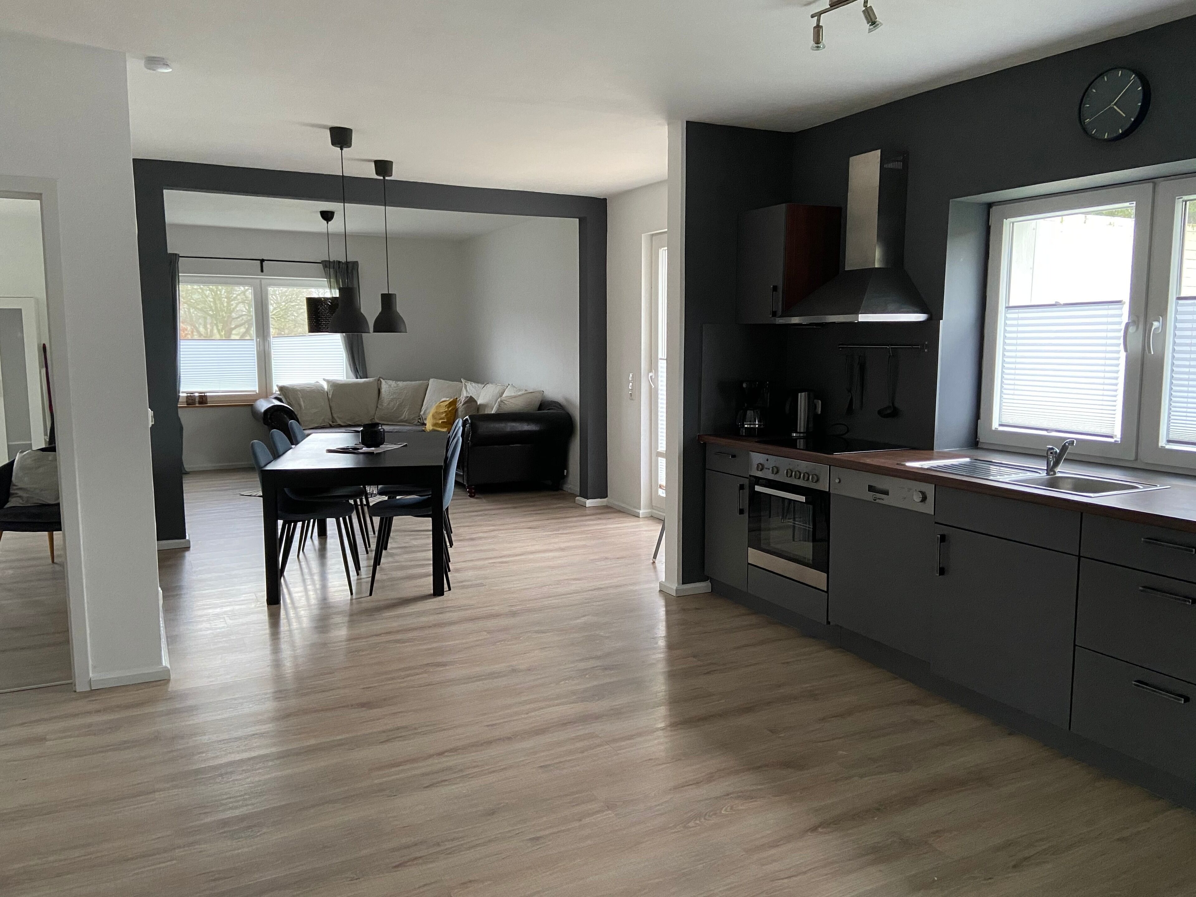 The apartment is built as an in-law of a single-family house in the best residential area in Heide, has its own access and a separate entrance. It has an open living and dining area on the ground floor with new modern kitchen from the manufacturer Nobilia. It leaves nothing to be desired and invites you to cook and linger with its high-quality electrical appliances and extensive equipment. (The exact equipment is available in the details description below). The dining area offers ample space for shared meals with a table and 4 seats.
