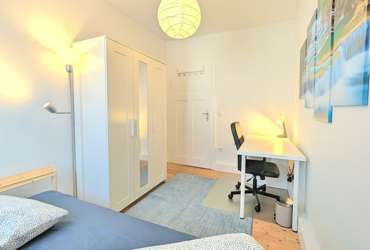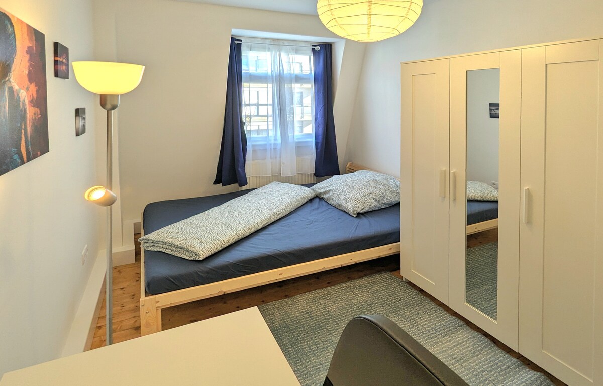 Your room is on the 2nd floor, a newly renovated old apartment in which almost everything you need is available. In the apartment, each guest has their own room and you can use the kitchen and bathroom with four other guests. Bicycles can be parked in the courtyard.
