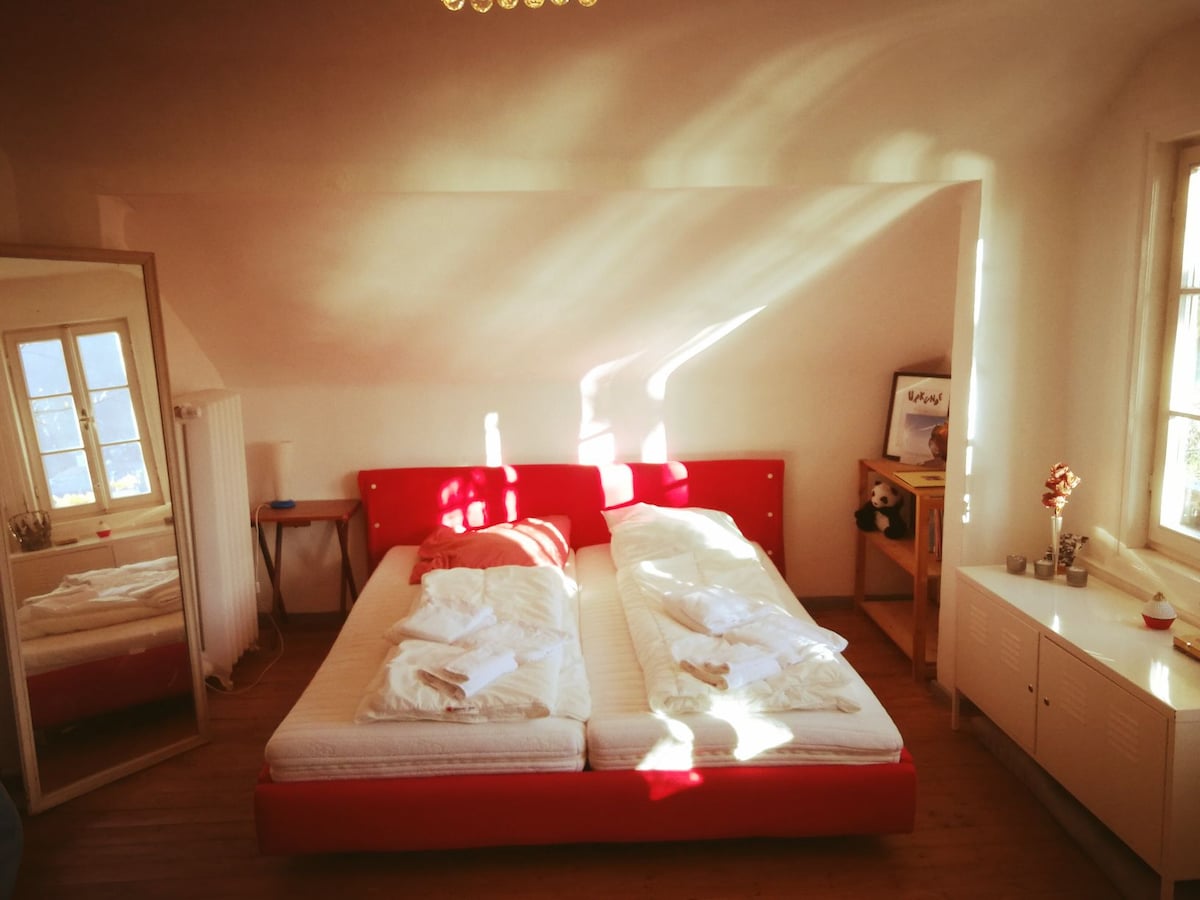 Shared use of the 2000sqm park-like garden, located on the edge of the forest to the Königsstuhl, ideal for hiking and relaxing. 2 km to Heidelberg Castle, world-famous romantic old town and mountain railway (funicular).