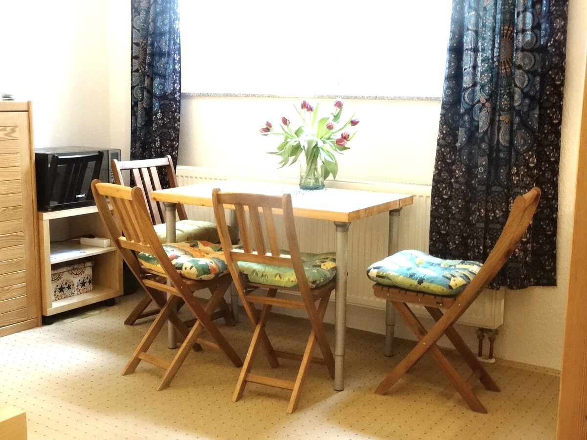 The studio is located in the basement of a family house with own entrance, approx 30m ², a Sing - bed (on request, more a Singe-bed for the second ), a kitchen with fridge with freezer , microwave, coffee maker, kettle , crockery, double plate-ceramic hob, dishwasher , toast, washing machine. A small shower room belongs to the studio, it is in house and located about 1 meter corridor of behind-door eliminator.