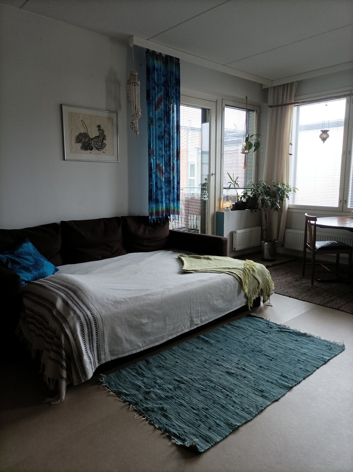 Studio to shere in the heart of Helsinki, just 3 minutes walking to Kamppi shopping mall, Kamppi bus station and Kamppi metro station. Close to Central railway station (around 12 minutes walking), airport express Bus station (Finnair city bus).