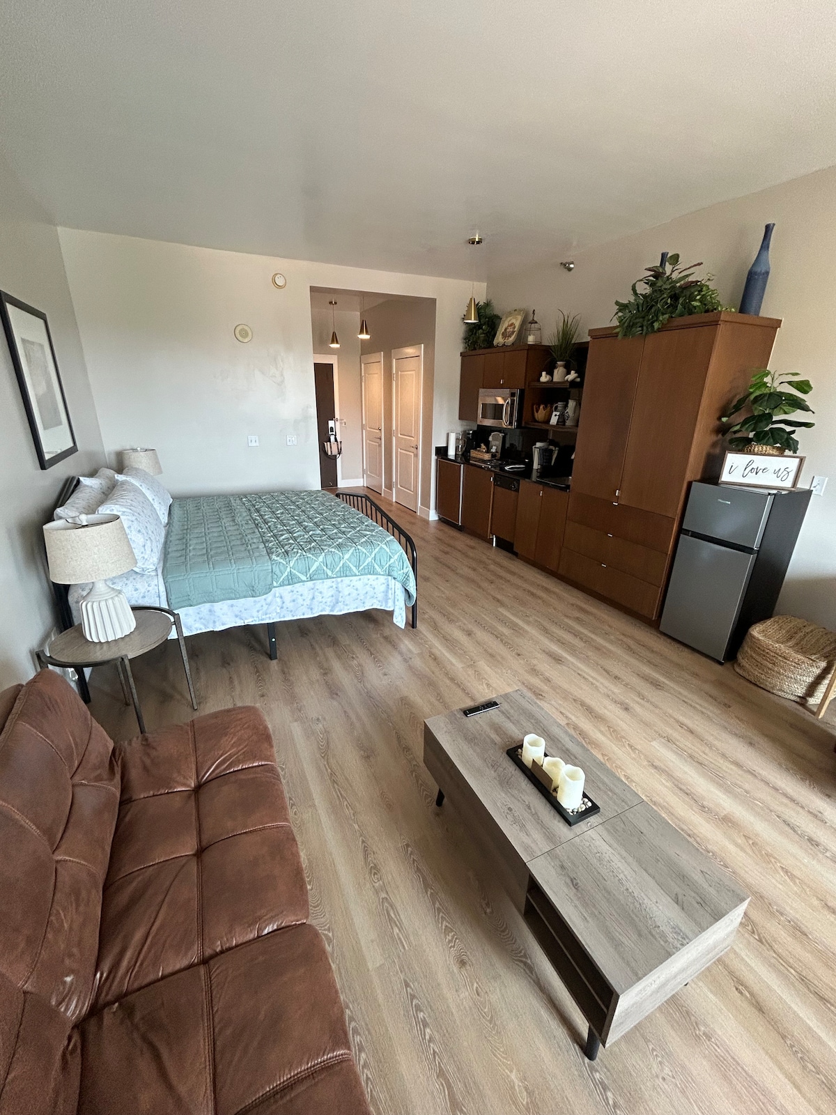 Relax in this cozy studio watching your latest movies with Roku or enjoy your morning coffee in the patio enjoying fresh air and blue skies.