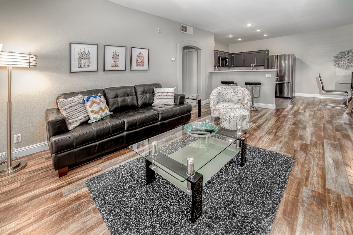 In line with the luxurious Florentine theme, the Penthouse is fully equipped with the latest technology and appliances, ranging from Sonos speakers to high-definition TVs and an in-unit washer and dryer. In addition, guests have access to the Viera Complex amenities which include two resort-style pools and a modern fitness center. This Penthouse also has the option for a parking pass in the connected parking structure (for a refundable fee).