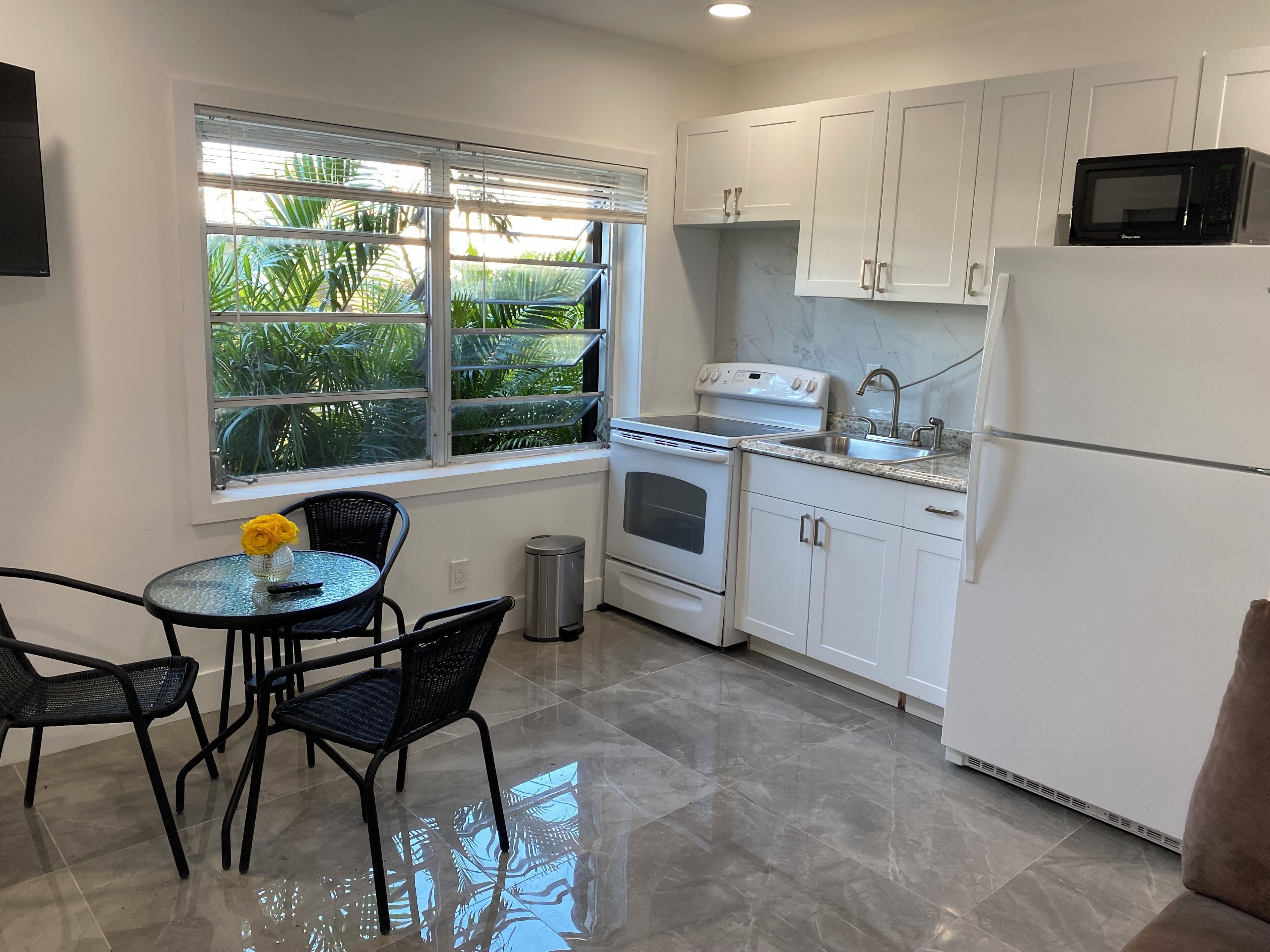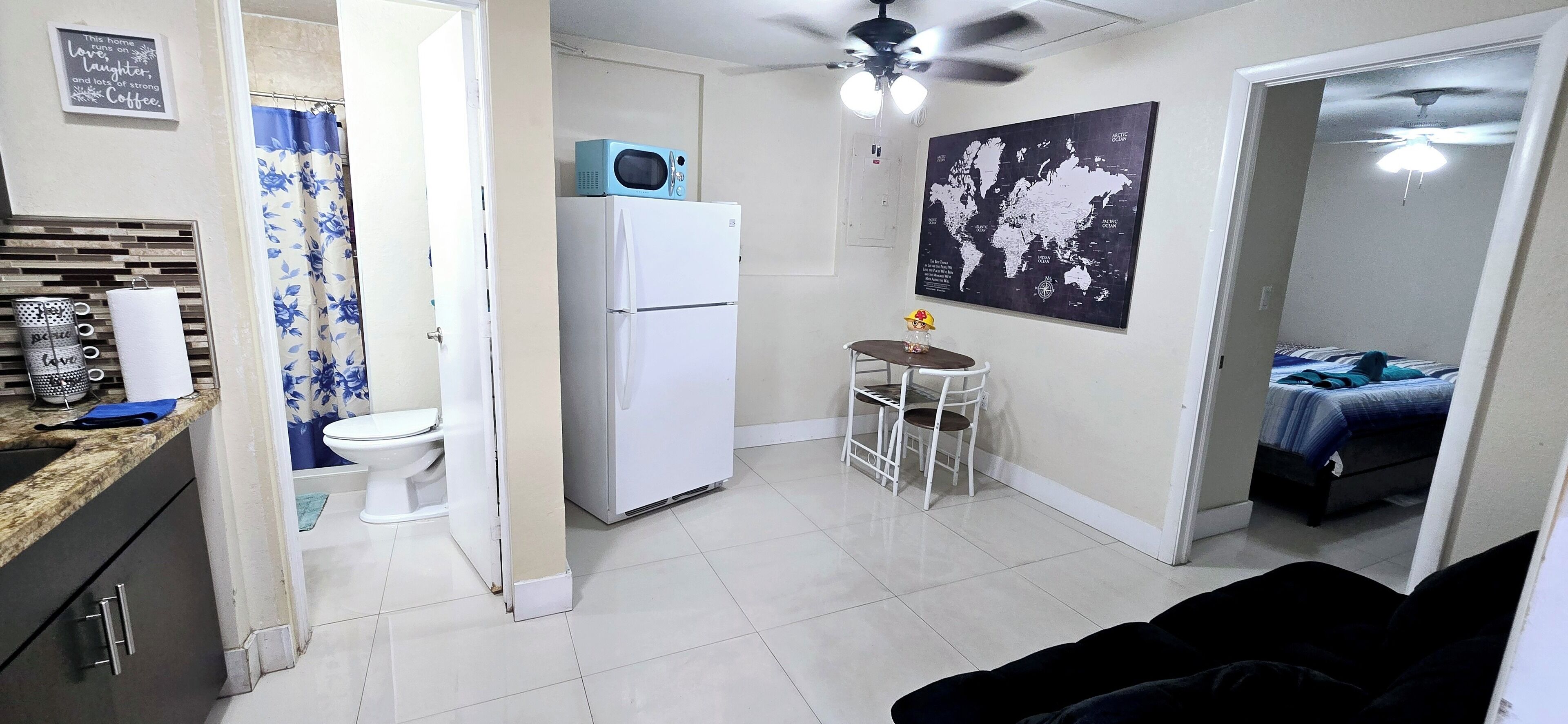 This is a one bedroom apartment fully remolded modern/fully furnished private entrance and private parking about 15 minutes drive from Miami international Airport metro rail station is about 4 blocks away as tri-rail station is about a 5 minute drive every thing is pretty much walking distance which is odd for Miami super market laundry mat gas station barber shop among a lot of other things safe and peaceful neighborhood as well as security cameras on the exterior of the property