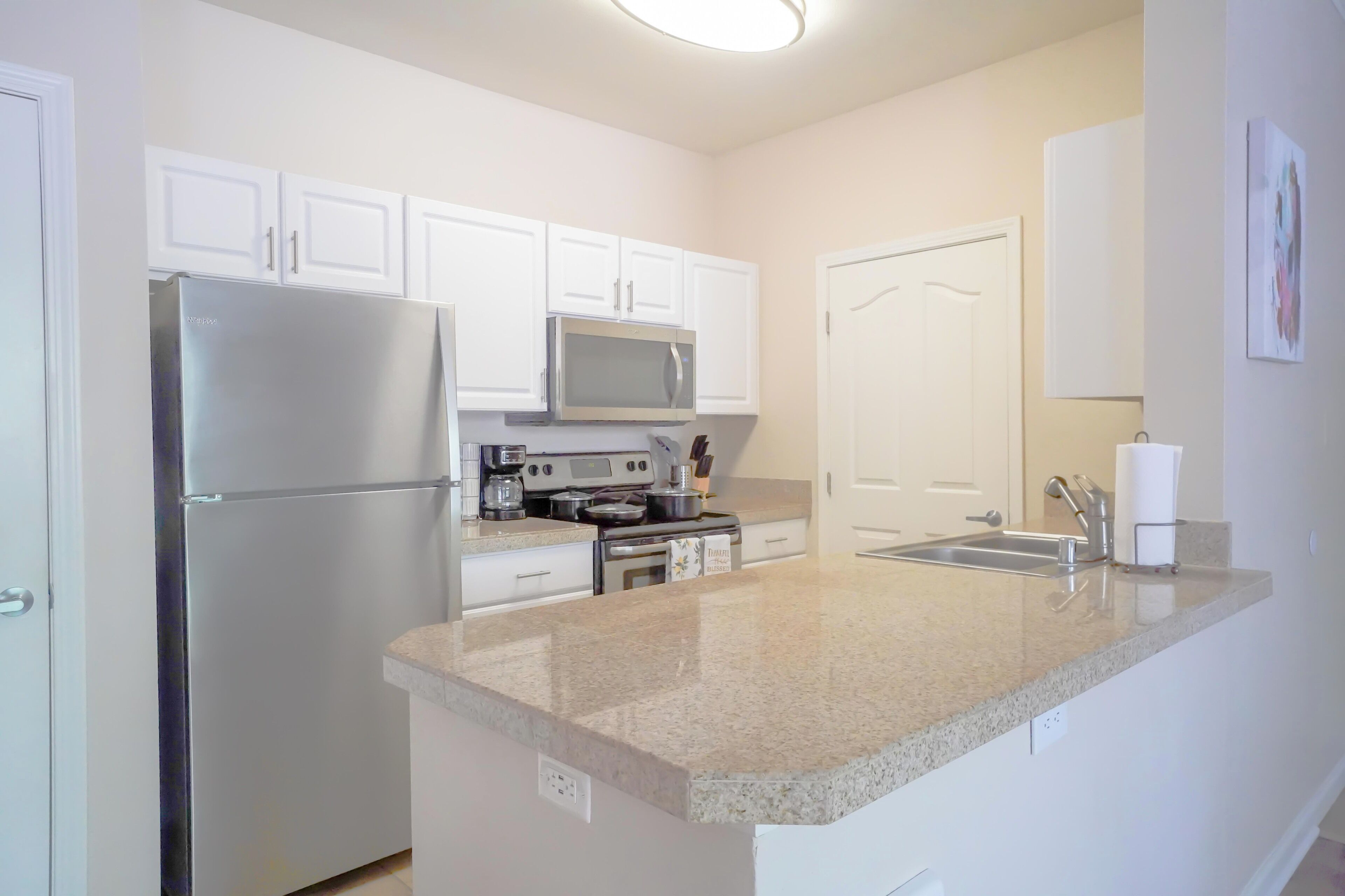 It's equipped with a fully provisioned kitchen, 4k Smart TV, spacious bathroom, blazing fast WI-FI, and even a washer and dryer.