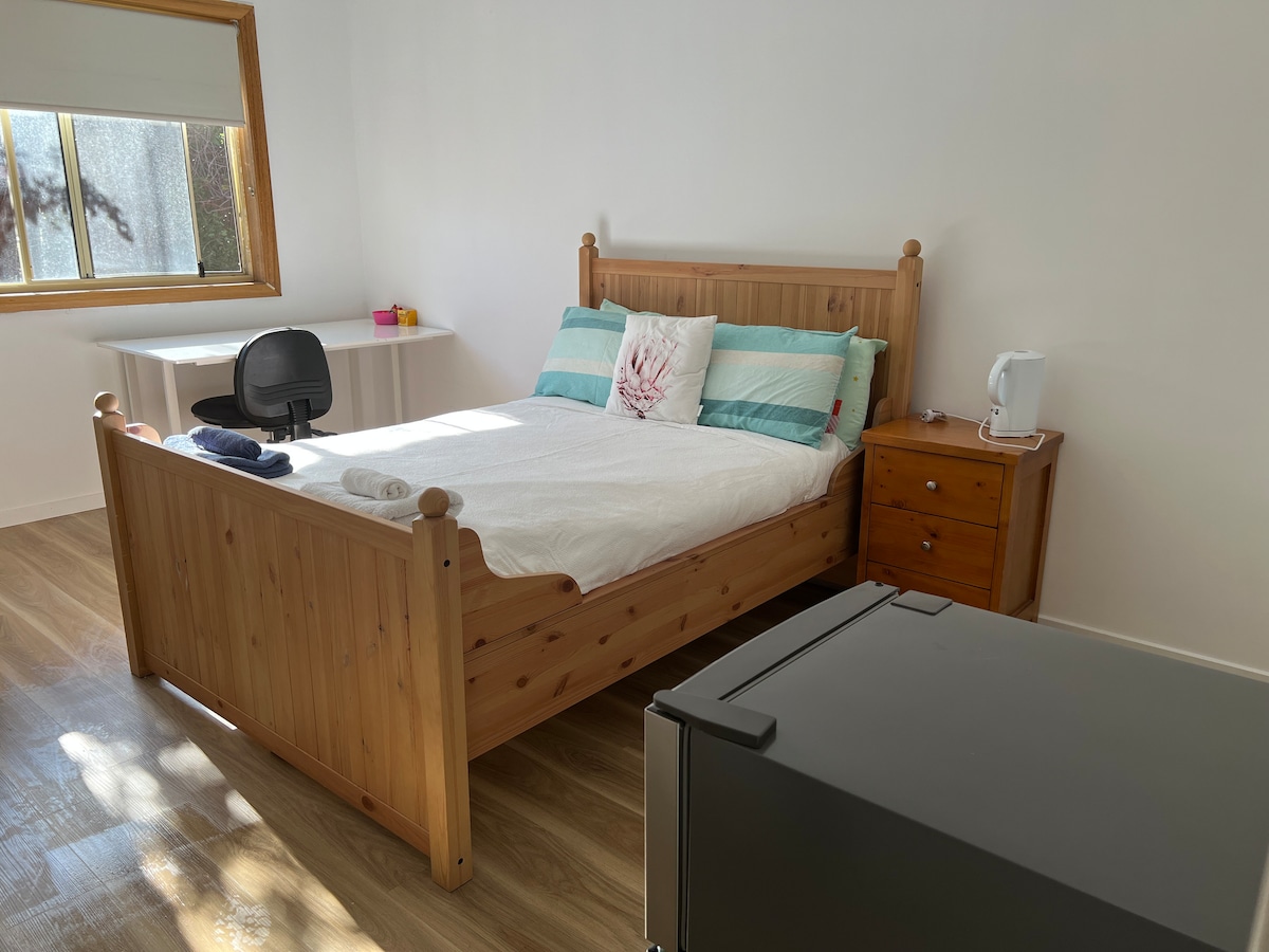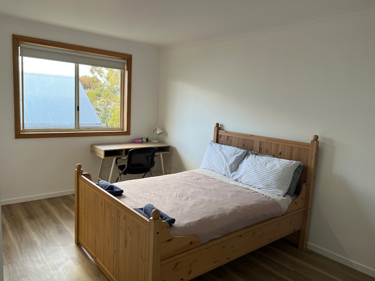 Your room is affectionately called the "Chalet". It has a queen sized bed with a separate bathroom with shower. There are cooking amenities, a sink, toaster, microwave, kettle, hotplate, cooking equipment, fridge. Recently renovated with Tasmanian oak floorboards for a retreat feel.