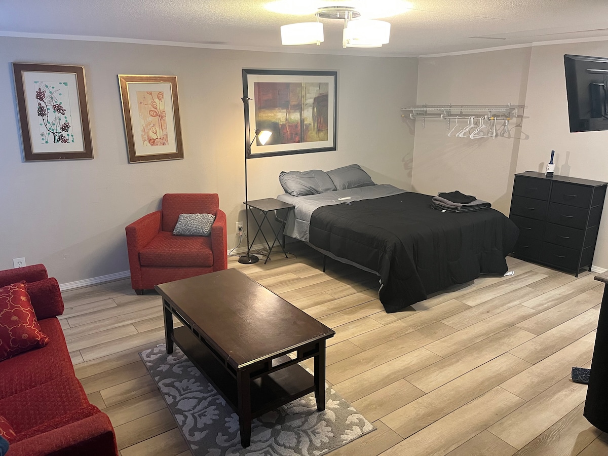 1 room Studio Apartment. HD TV and Wifi included. 1 full siz bed and a sofa bed that opens to a twin size bed.