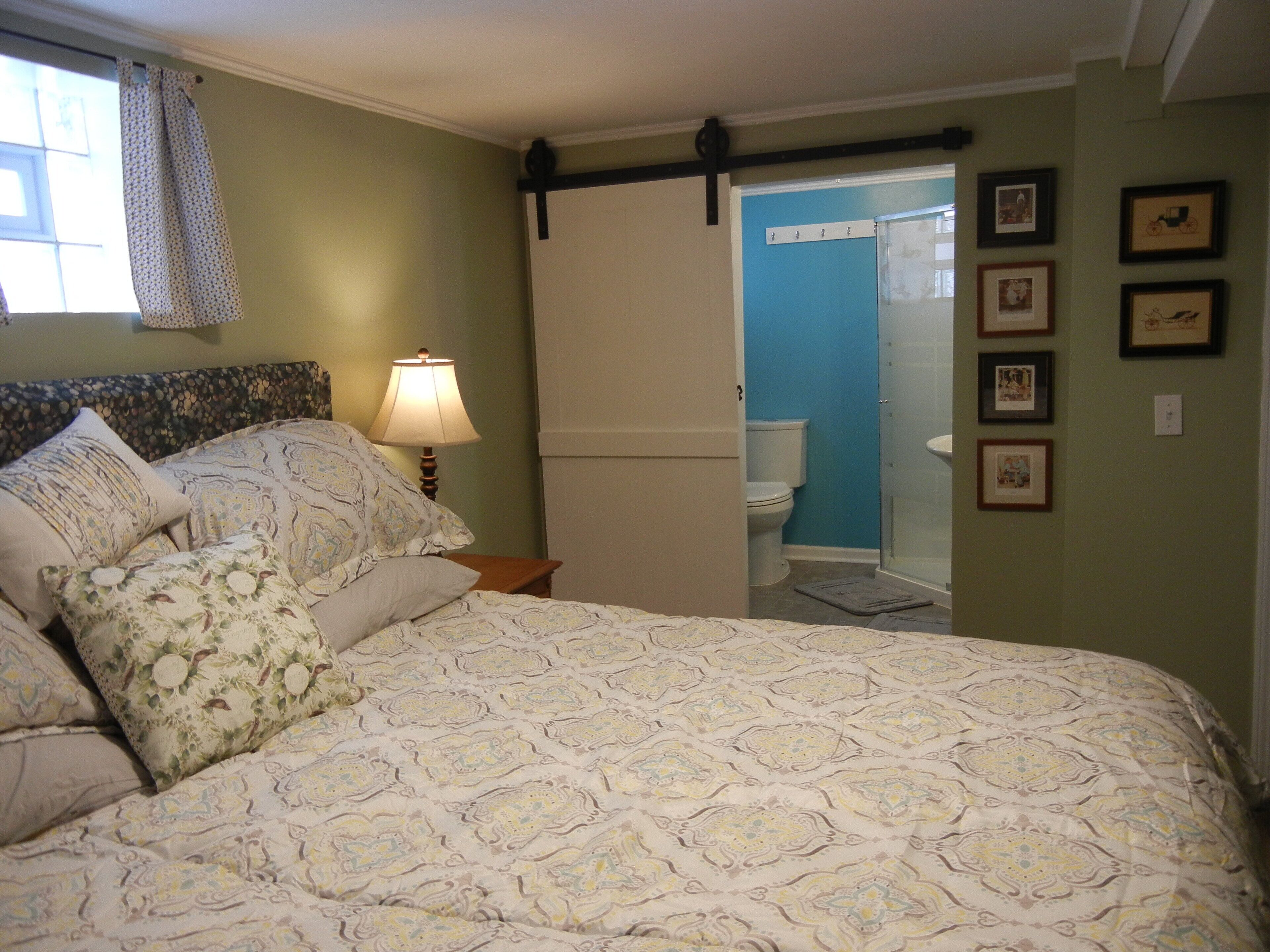 This is a garden apartment in the basement of our home. Entrance is in the rear. The guest has their own private entrance to the apartment. Safe, secure and private.