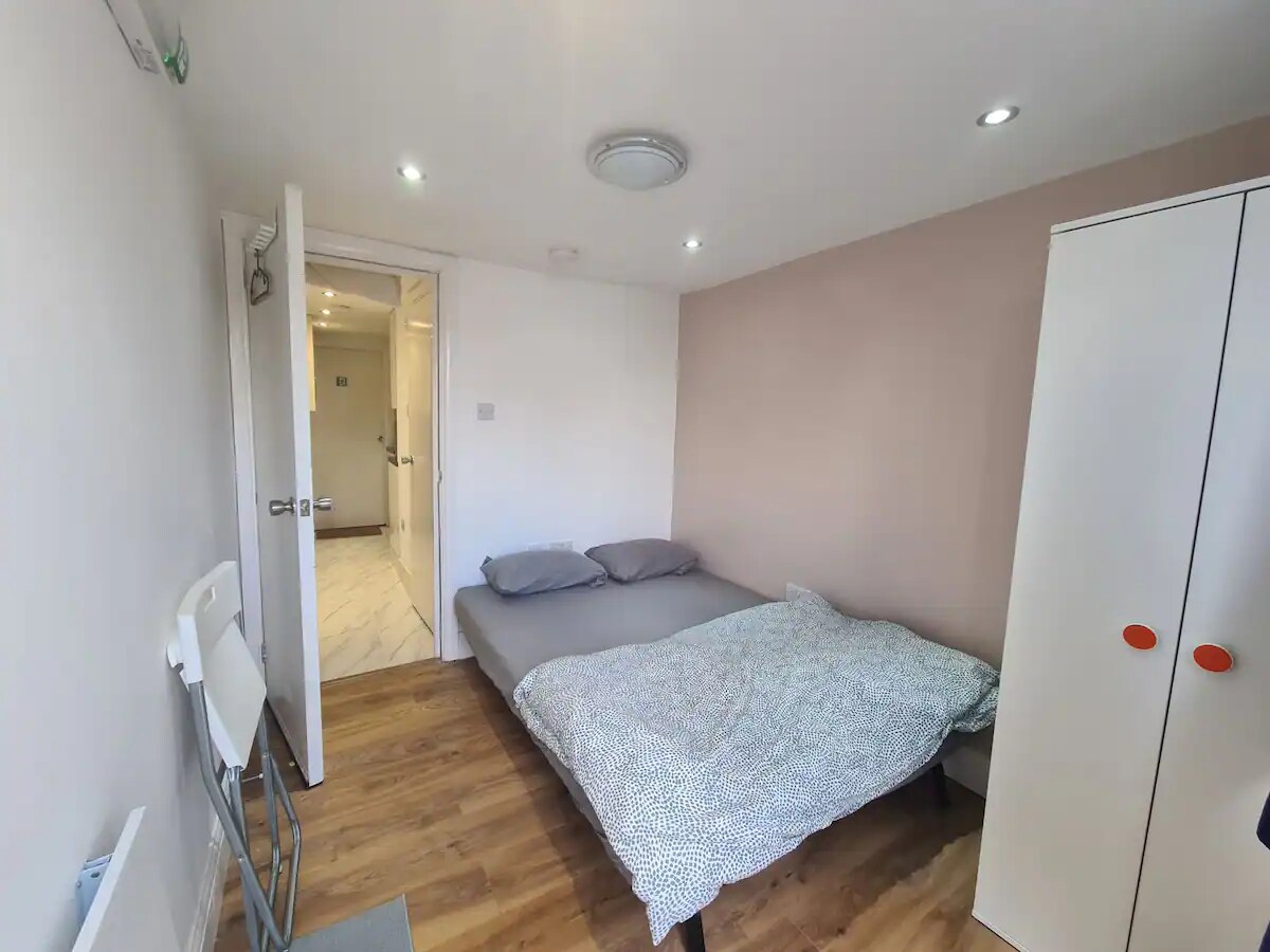It is a private double bed room in a ground floor flat of 2 bedrooms with kitchen and bathroom to be shared with one more guest
