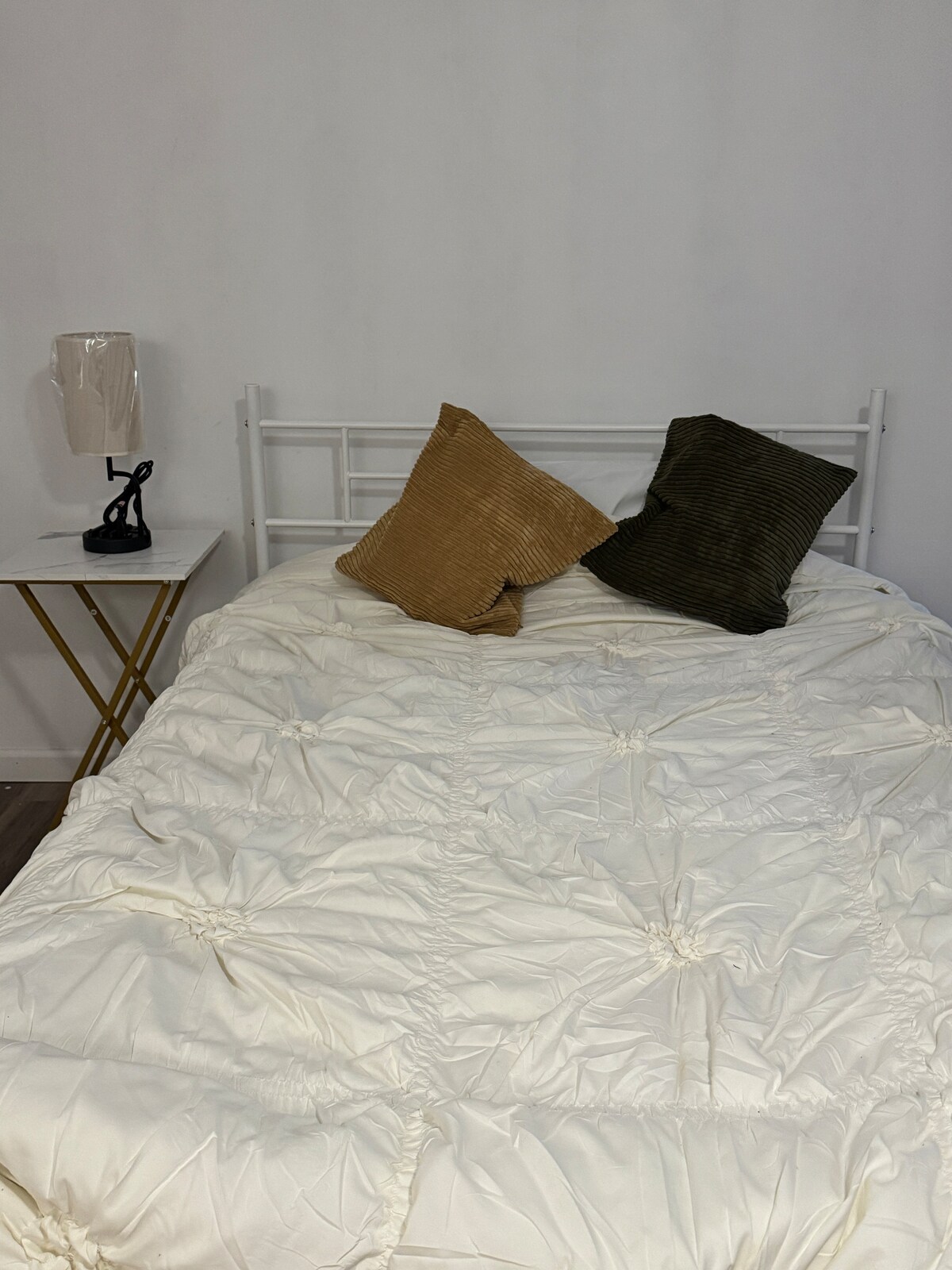 - Queen-size bed with fresh linens & plush pillows
