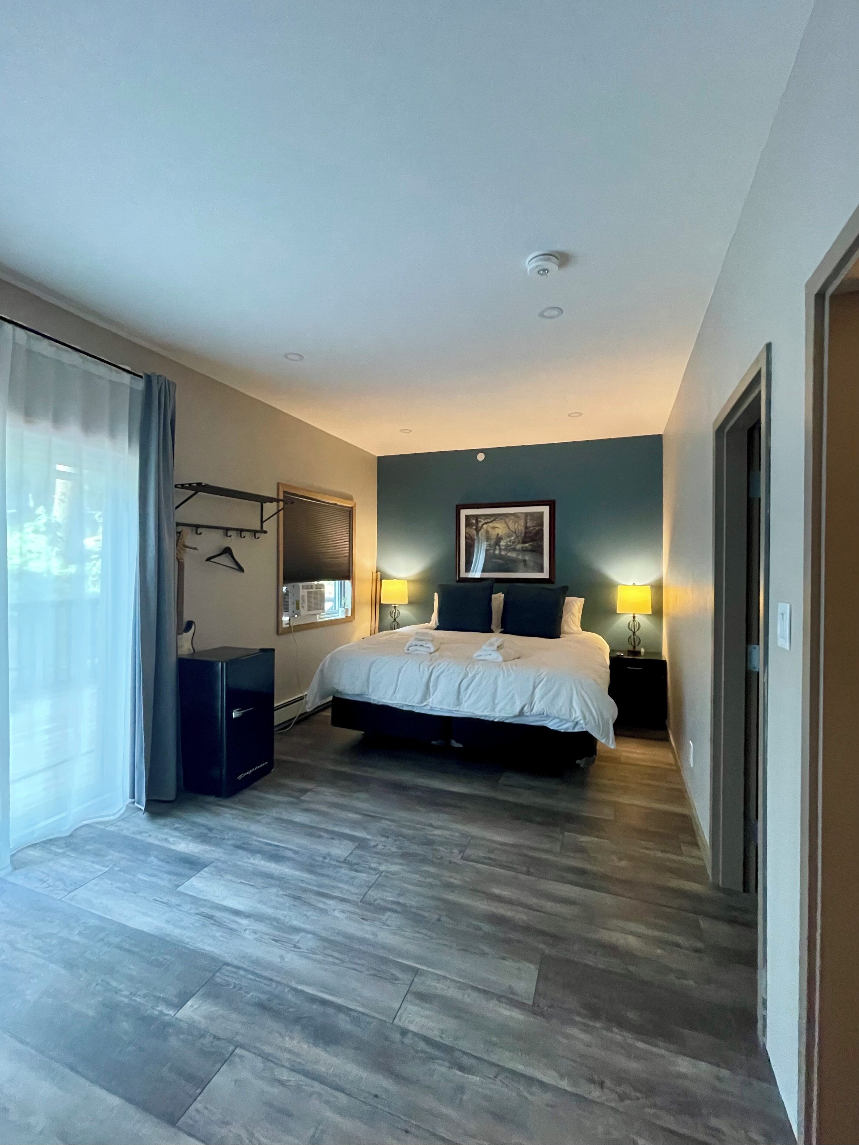 Muskoka is an adorable room at The Jypsy Inn. You will have your own patio when you stay in Muskoka. As well the room has a small fridge w/ freezer microwave, coffee maker, keurig and toaster. The king size bed is super comfy . When you stay at our inn you are close to everything in Bracebridge so close that you can park your car for the weekend and walk everywhere. We are around the corner from the falls and the main street.