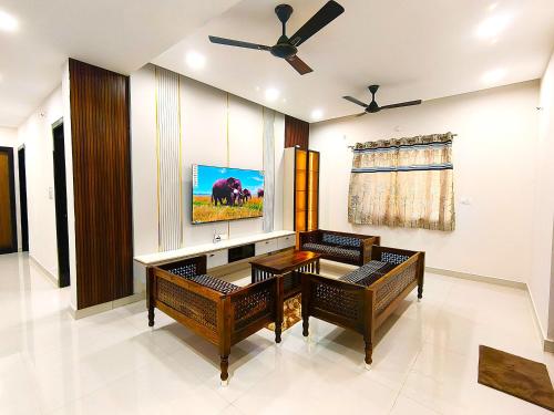 Evara Luxury Living Central 3BHK near HITEC City offers accommodations in Hyderabad, 5.2 miles from ISB and 9.2 miles from Golkonda Fort. This property offers access to a balcony, free private parking, and free Wifi. AP State Archaeology Museum is 13 miles from the apartment and Hussain Sagar Lake is 13 miles away. Featuring a terrace and garden views, the spacious apartment includes 3 bedrooms, a living room, flat-screen TV, an equipped kitchen, and 2 bathrooms with a shower. Towels and bed linen are offered in the apartment. The property offers city views. City Centre Mall is 10 miles from the apartment, while Ravindra Bharathi is 12 miles from the property. Hyderabad Rajiv Gandhi International Airport is 22 miles away.