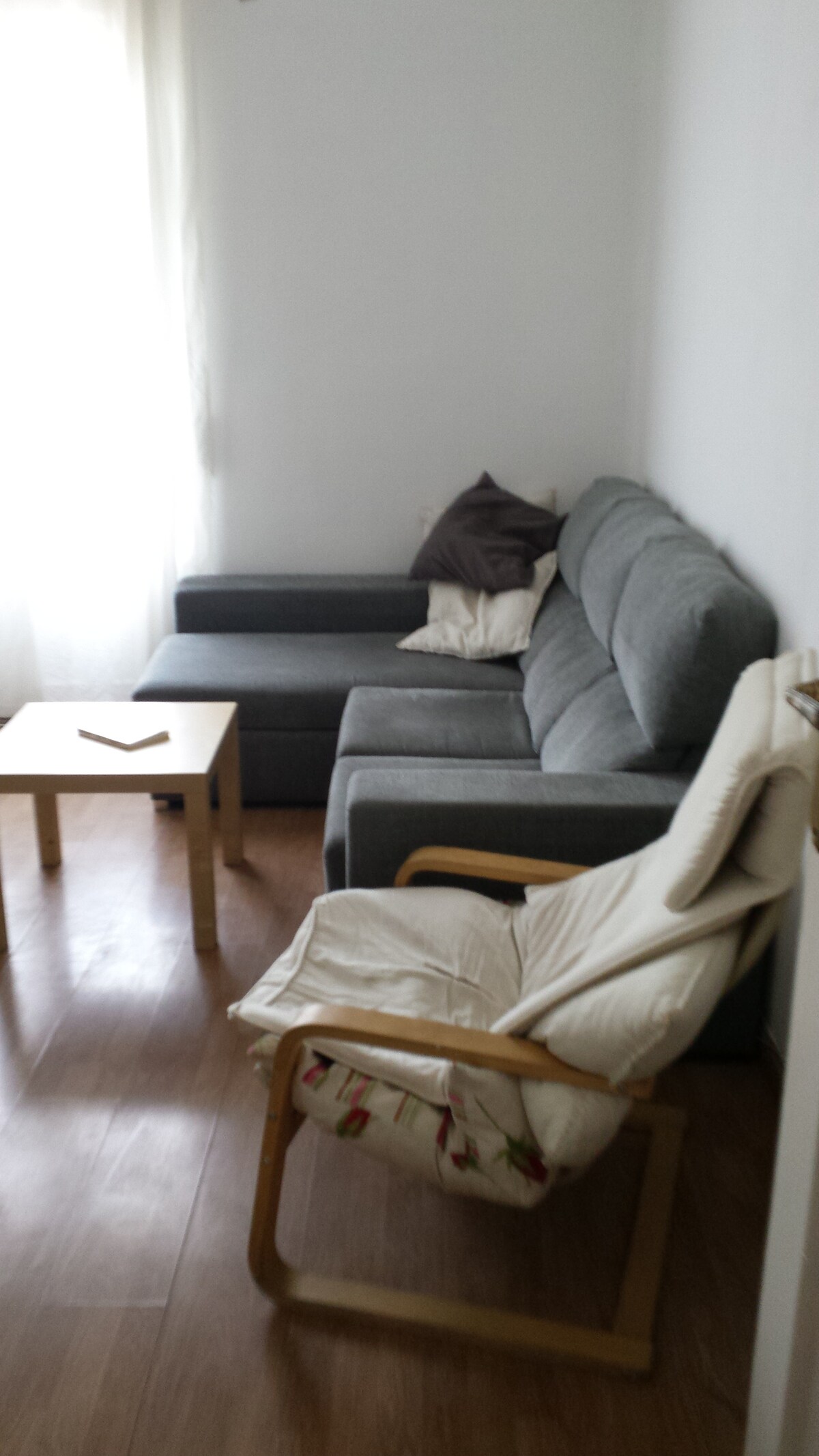 Living room with sofa bed of 1.40m, open to the kitchen and the living room adjacent to the living room, TV with Freeview, tables and chairs, another sofa decorate the apartment and give you the warmth needed to make you feel at home.