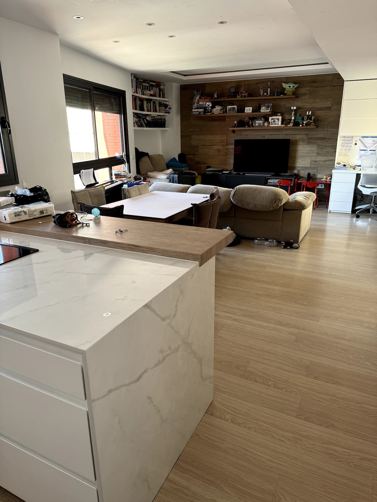 Open kitchen by a wonderful arch, which gives more space and light. The very spacious and comfortable kitchen has oven, fridge-freezer, hob, a very large counter where you can be cooking a pleasure.