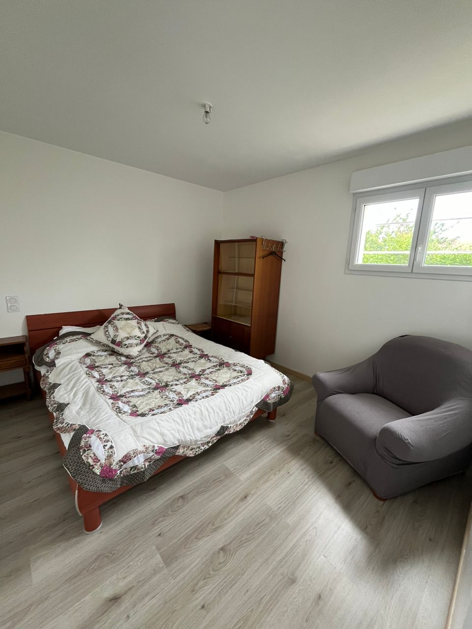 Room equipped with a bed 180 x 200, wardrobe, desk, chair,