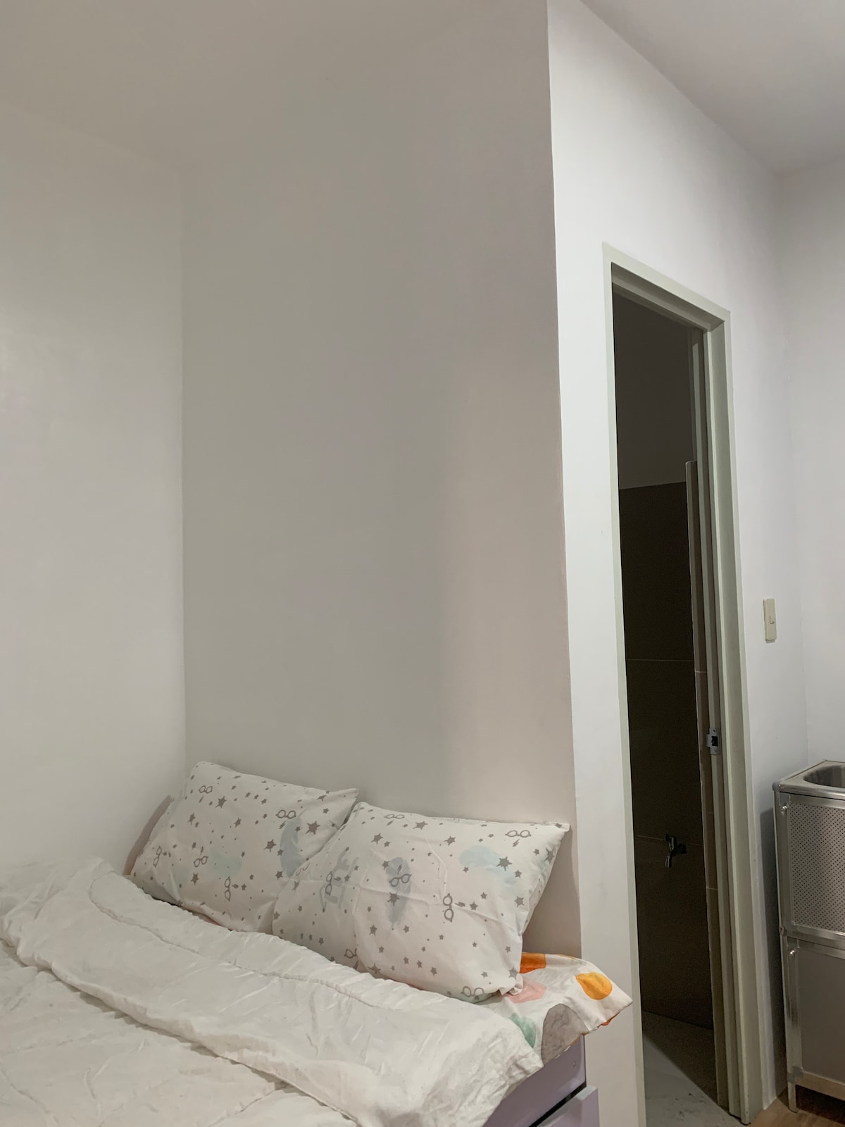 Spacious bedroom with private bathroom in an apartment in a gated compound; accces to large sala and kitchen.