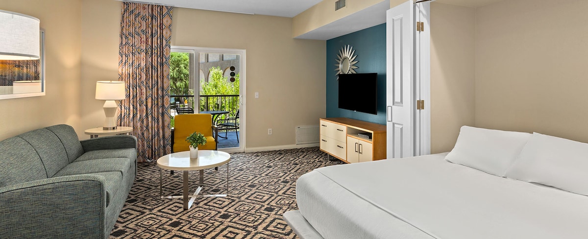 Escape to the Desert, but feel right at home in this updated Private Casita in a quiet safe neighborhood. Enter through your own private entrance and enjoy all the great features of this space, including a brand new memory foam king size bed, a fully redone mini kitchenette, and cool Mid-Century Modern vibe.