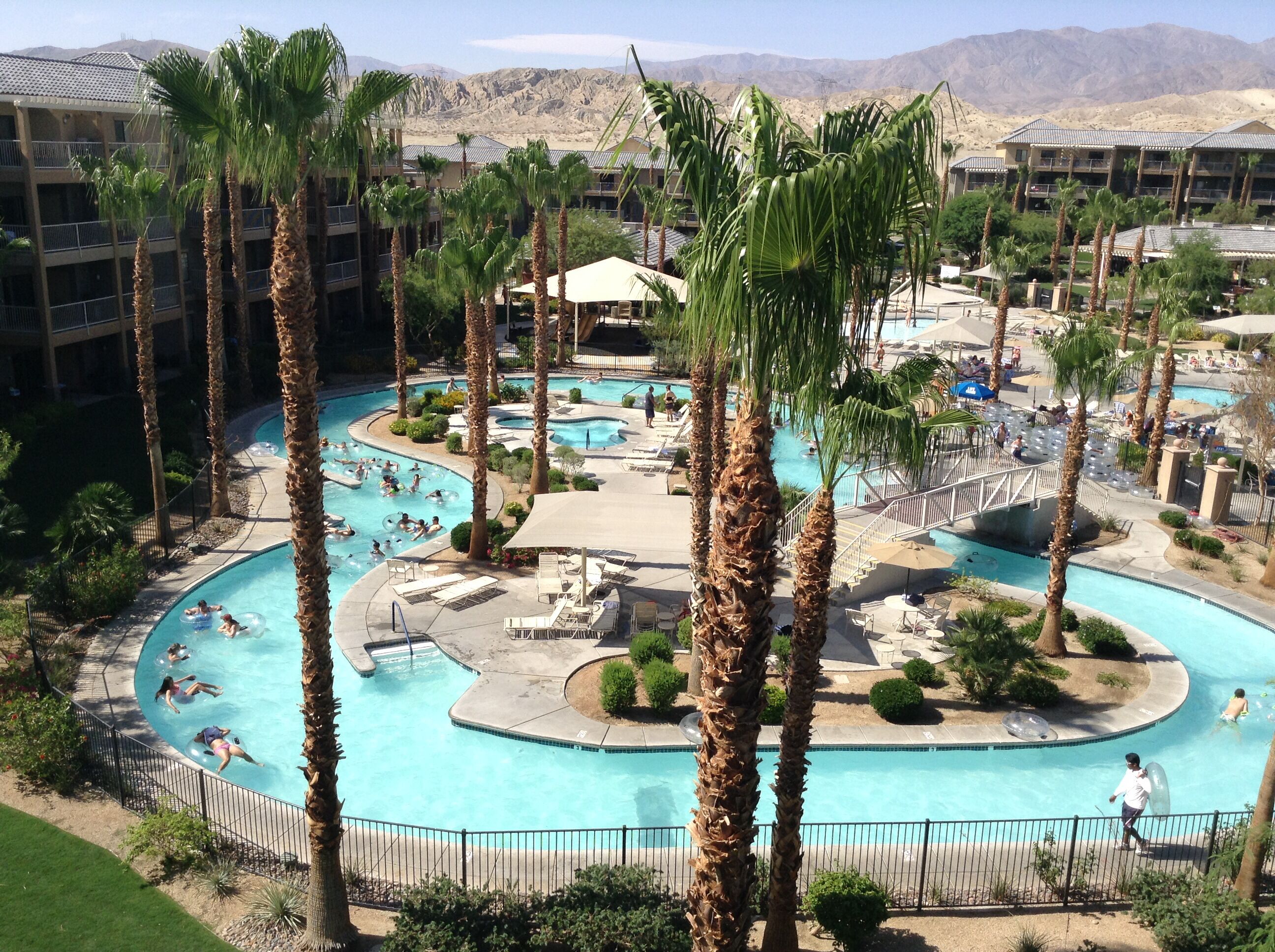 - "Recently stayed at worldmark Indio for Coachella weekend 2. This location is ideal for a variety of reasons. The rooms are clean, the location is pristine, the staff is helpful and always gave a smile in passing. The unit was nice with all the amenities needed for a short stay." - "Really nice place with lazy river and pools. The 2 bedroom suite has lots of room and a murphy double bed that folds down from the wall. Plenty of activities for the kids to do. The front desk said the pool water gets to a max of 80 which is a bit cool - would prefer 83-85 but the desk said they don't let it get higher than that. Not sure why."