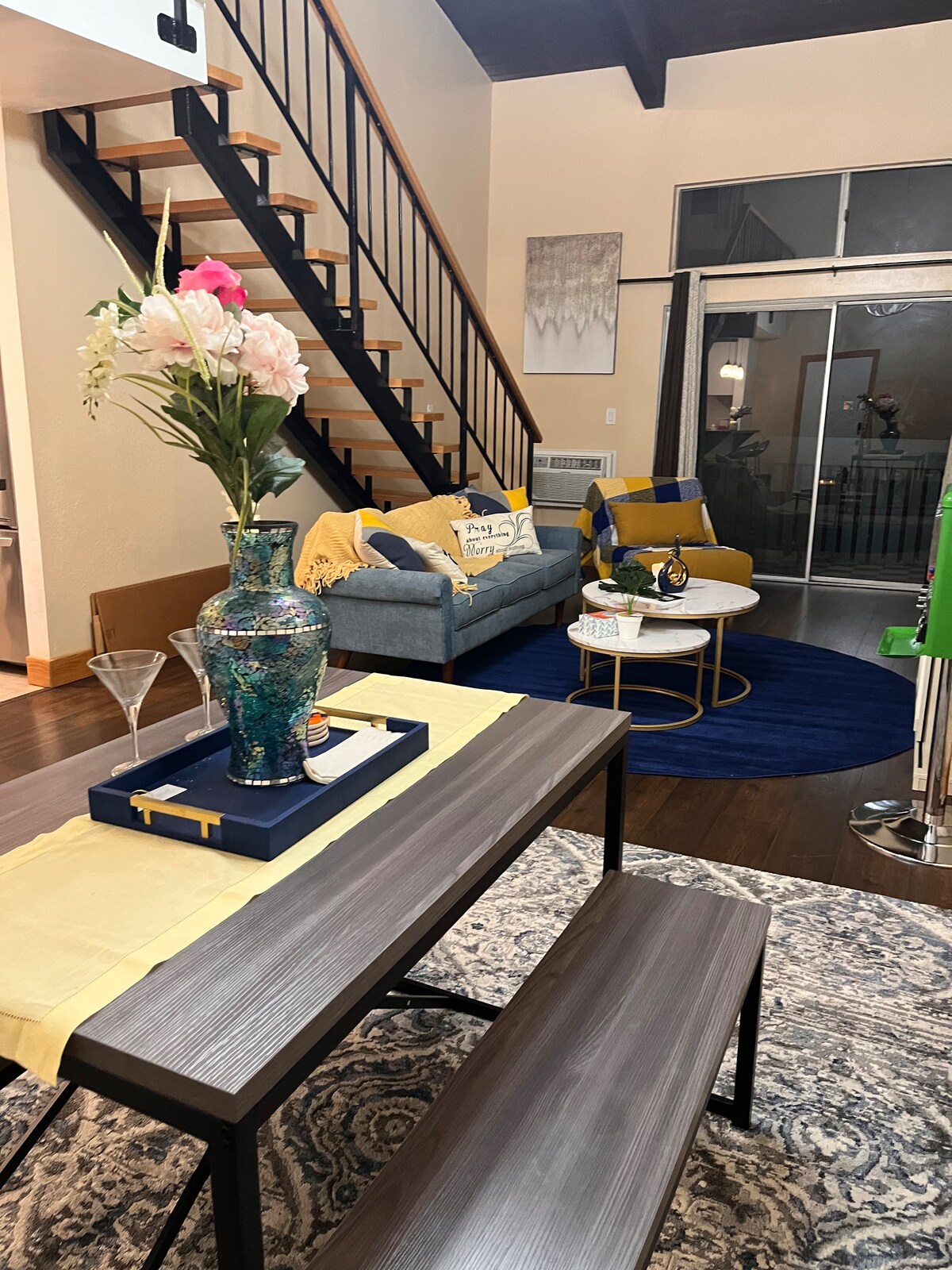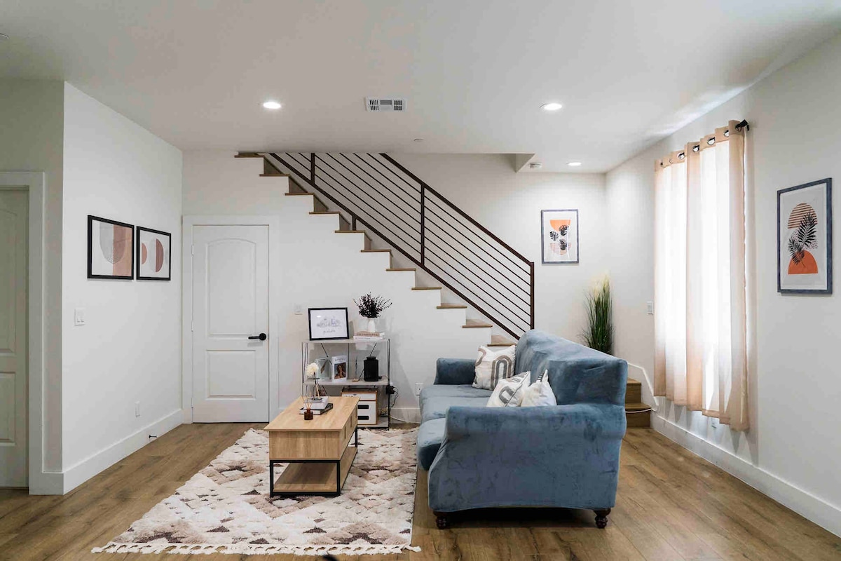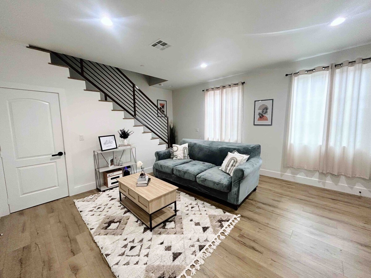 Unwind in Inglewood at this lovely townhouse-style apartment in an intimate 4 unit building. This cool and enchanting unit offers a peaceful retreat for guests. The living room, dining area, half bath, and kitchen are on the ground floor and the 2 bedrooms and full bath are upstairs. Each bedroom has a queen bed and digital locks (great for roommates) and the full bath has a tub and shower combo. The apartment features amenities like AC, heating, WiFi, coin laundry, a washing machine, and an iron. This unit is great for travelling professionals, students or vacationers. It's minutes from LAX, Sofi, South Bay, Beaches, and LA. It's just off the 405 FWY and LaCienega Blvd. Also near a major Metro rail stop.