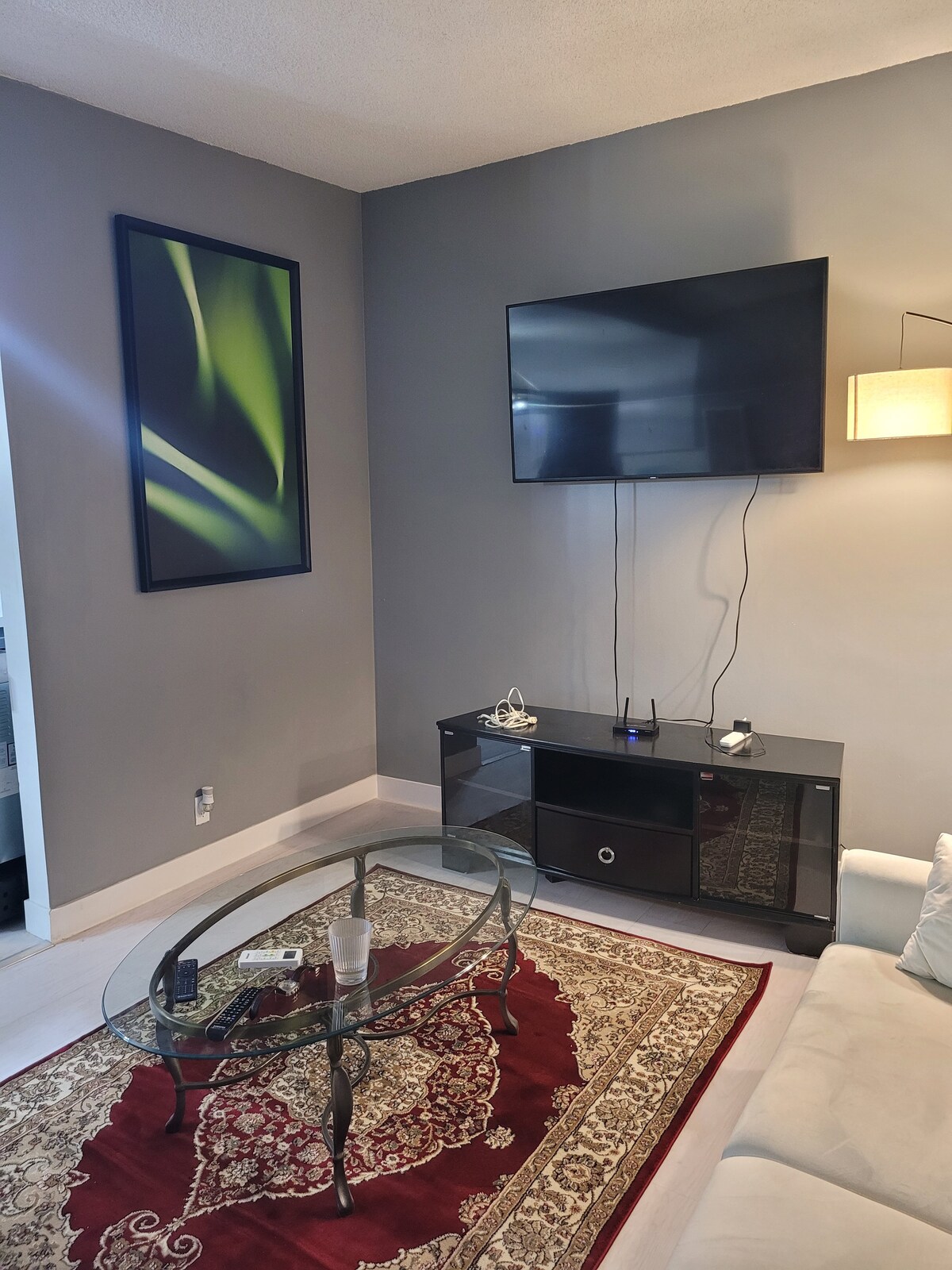 High speed internet, 65" smart tv in living room,