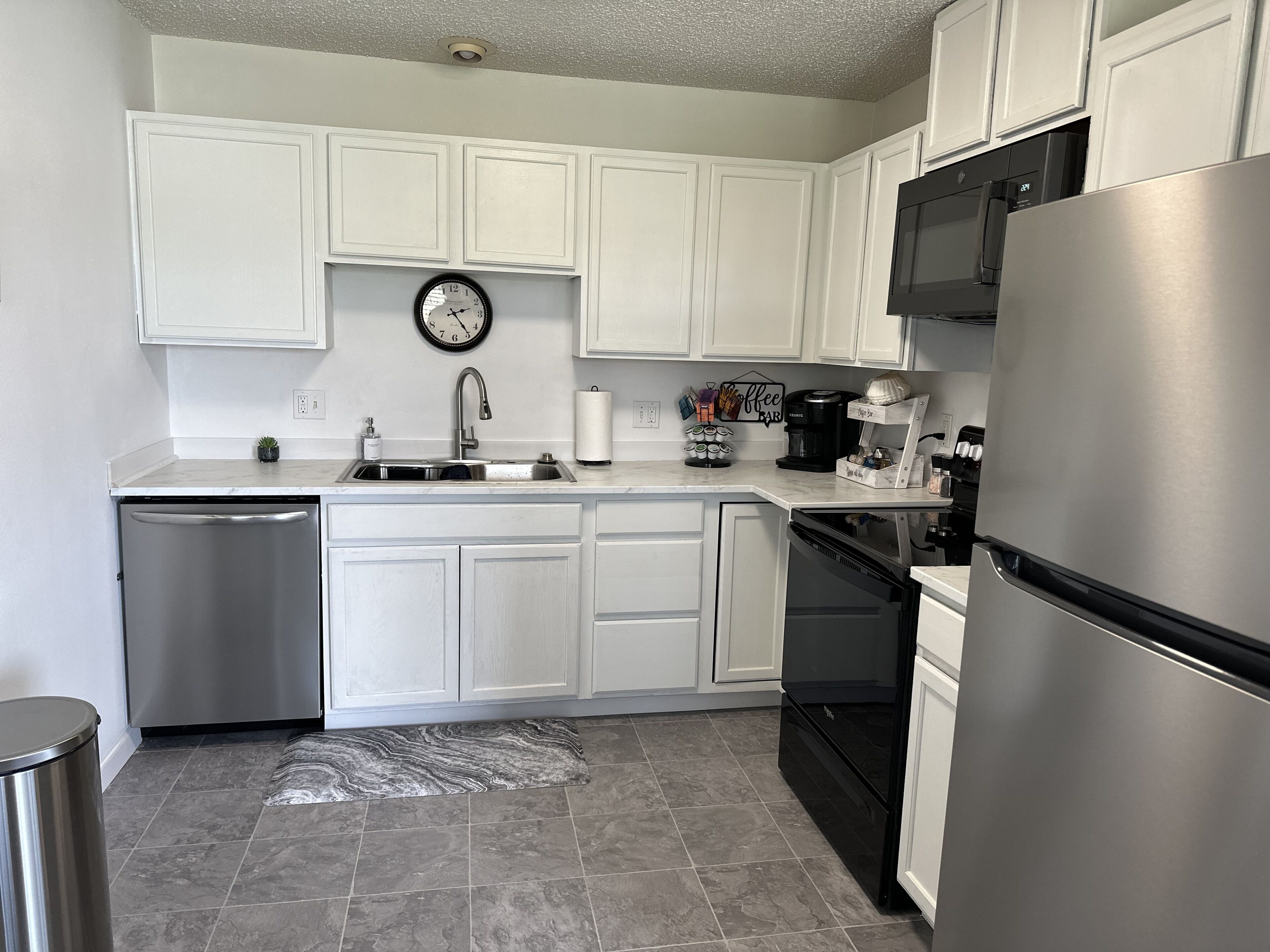 KITCHEN: Dishwasher, coffee maker, fridge, stove & oven, microwave, dishware/flatware, trash bags/paper towels, cooking basics, complimentary coffee, tea & snacks, spices