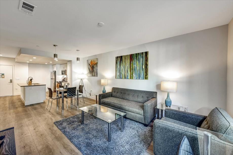 The apartment is equipped with all you need for cooking including a NutruBullet spice rack and Keurig coffee machine. In the bathroom you will find all of the essentials shampoo conditioner soap and a luxury rainfall shower with handheld attachment. All towels and linens provided.