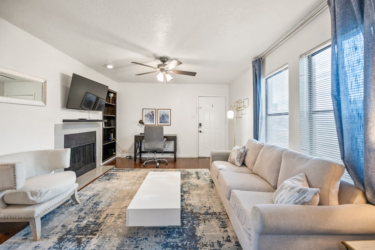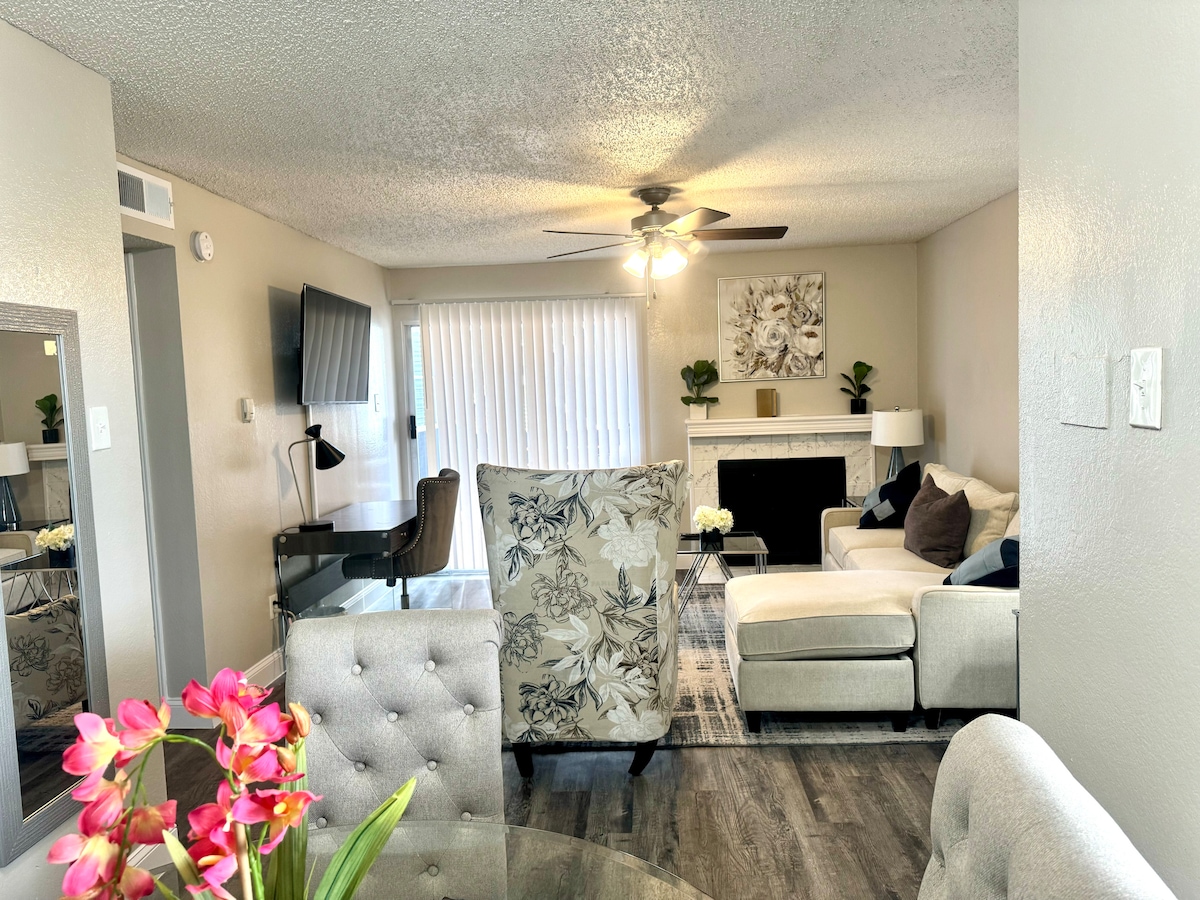 Renovated 1BD/1BA condo with a queen bed in a gated community. Features include covered parking, an in-unit washer/dryer, WiFi, Smart TV, all utilities, and a well-equipped kitchen. Enjoy modern comforts like a reserved carport, pool, chic lighting, tufted headboards, and cozy beds. Conveniently located near shopping, HWY 183/161, and DFW Airport. Check "Other Details to Note" for more on our pet policy, parking, keys, utilities, and more.