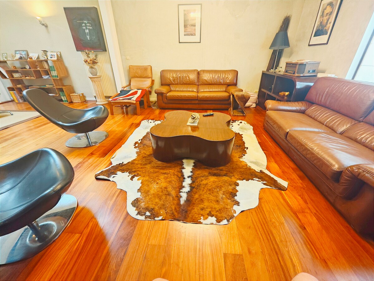 Charming vintage-styled 2-bedroom 2-bathroom apartment with garden closed to the locals' favourite Flagey area. The apartment can welcome up to 6 guests with two bedrooms with two queen beds and a double sofa bed in the living room. It is perfect for families.