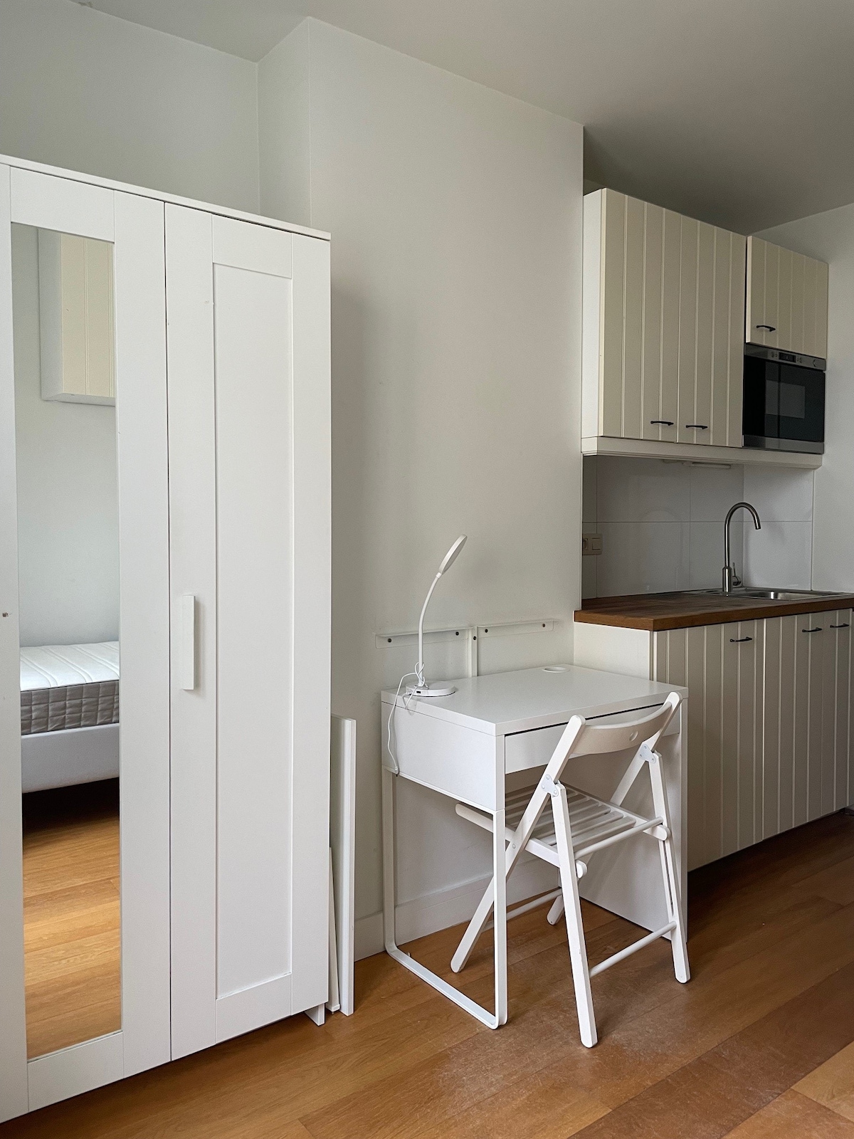 A few steps from Place Flagey, Ixelles ponds is this pretty small Studio with 1 bedroom with double bed, toilet sink and shower, living room with American kitchen. coffee machine, tv, internet, microwave available