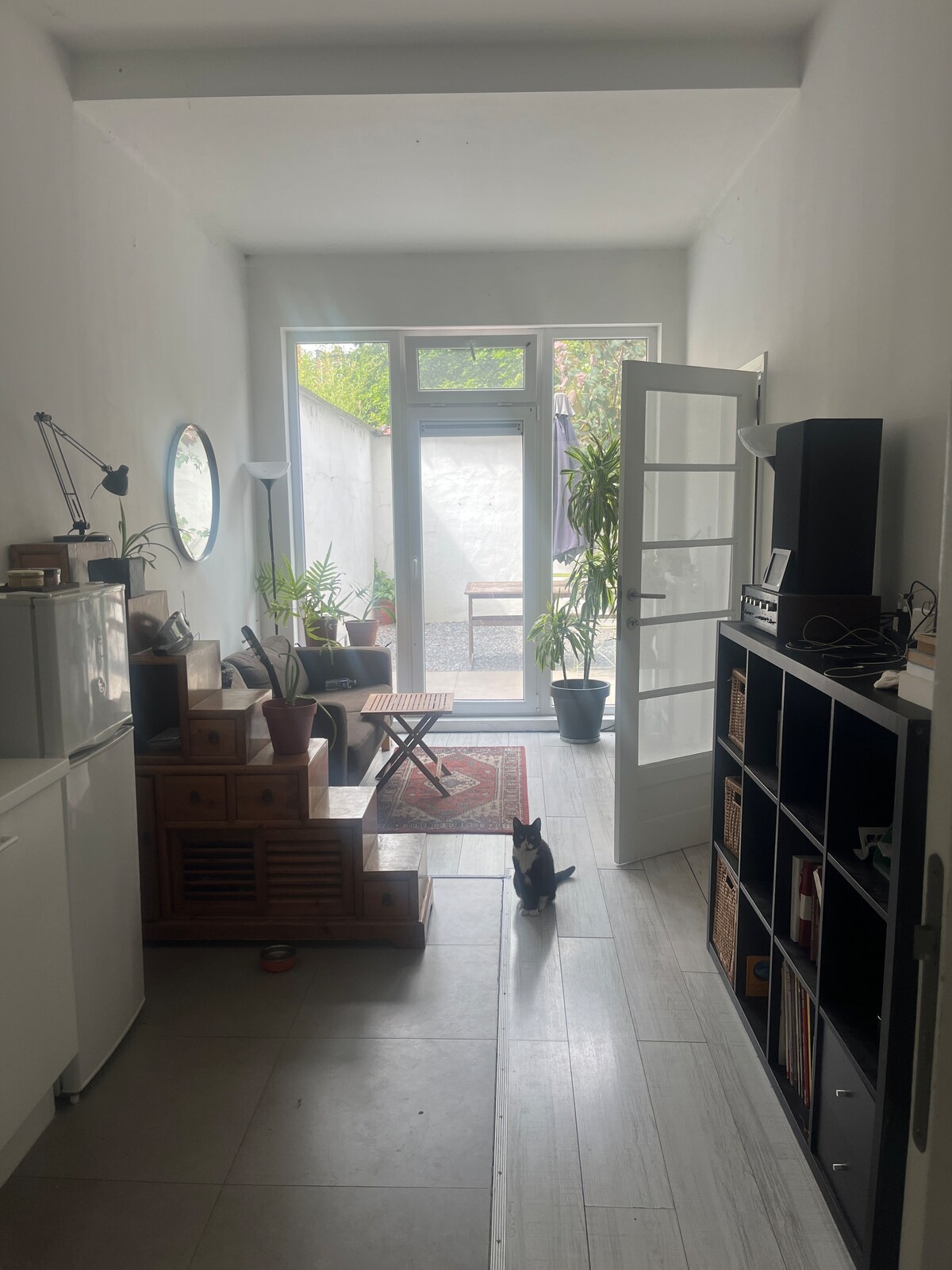 Open space basement flat located in Ixelles just 2mm walk from Chatelain market & 5mm from Av Louise/tramway.