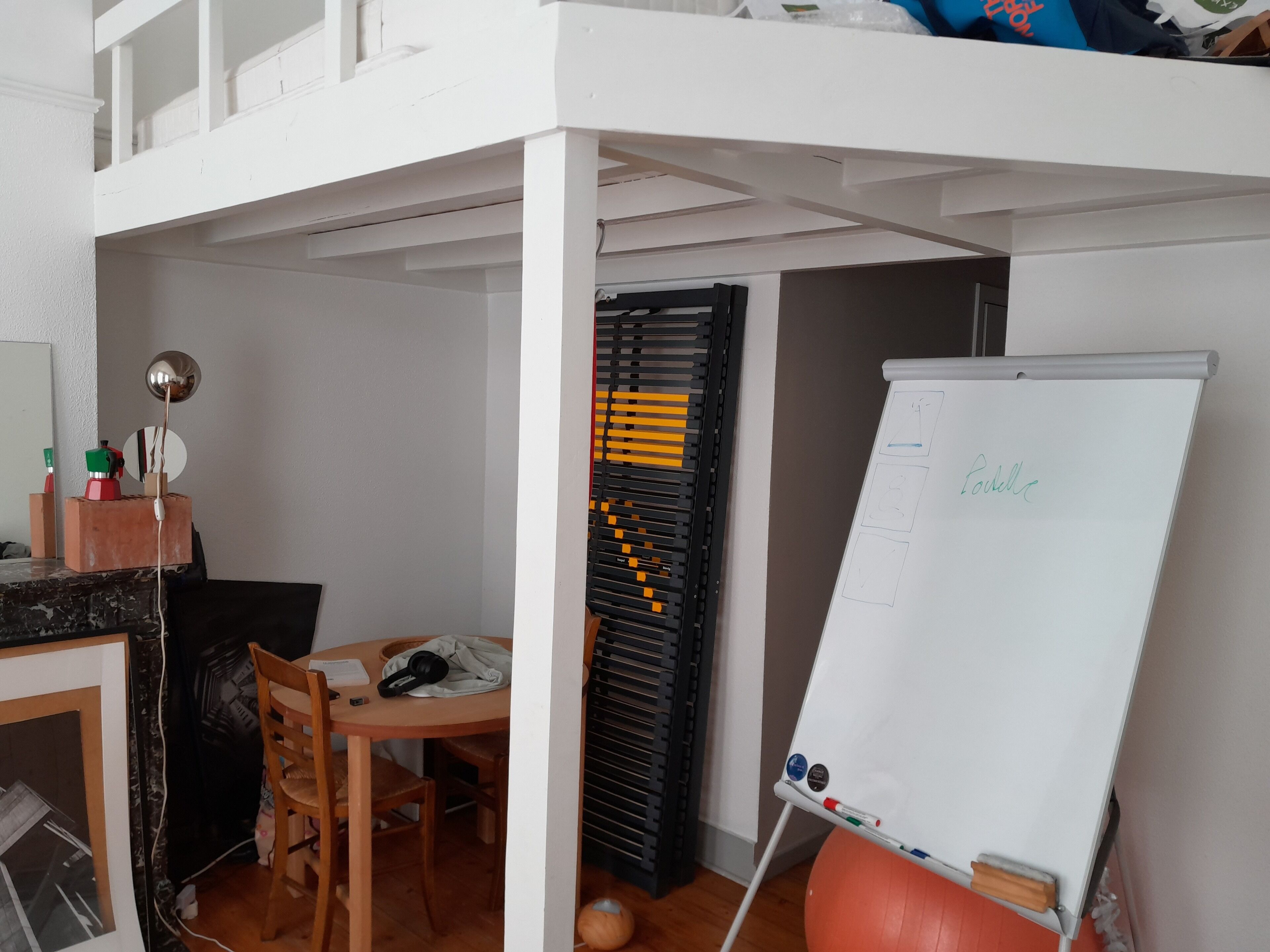 The apartment is spacious, on the 3rd floor. The common area includes the kitchen, living room and a mezzanine with a double bed. The bathroom is next to your room and the toilets are on the landing (convenient for privacy).
